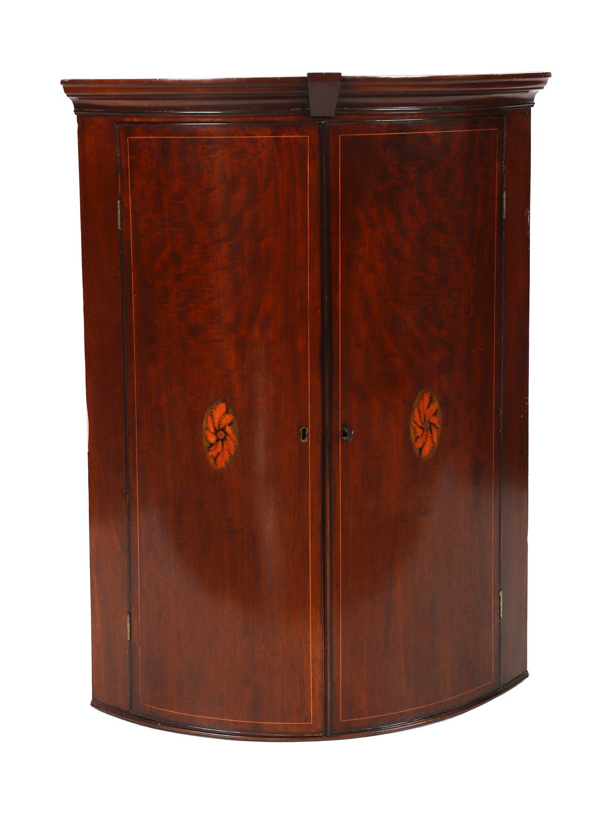 Lot 878 GEORGE III MAHOGANY BOW-FRONTED HANGING CORNER CABINET
