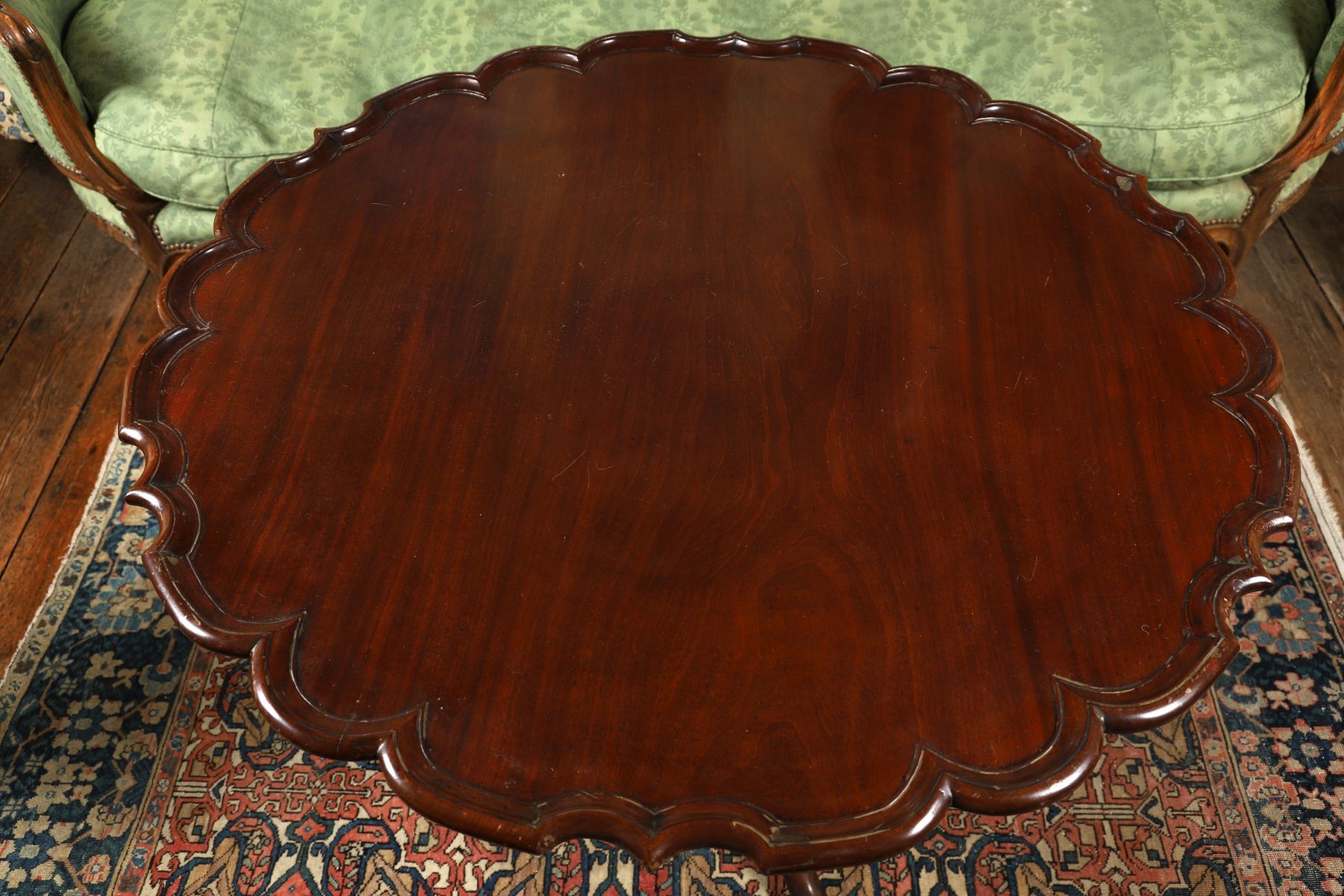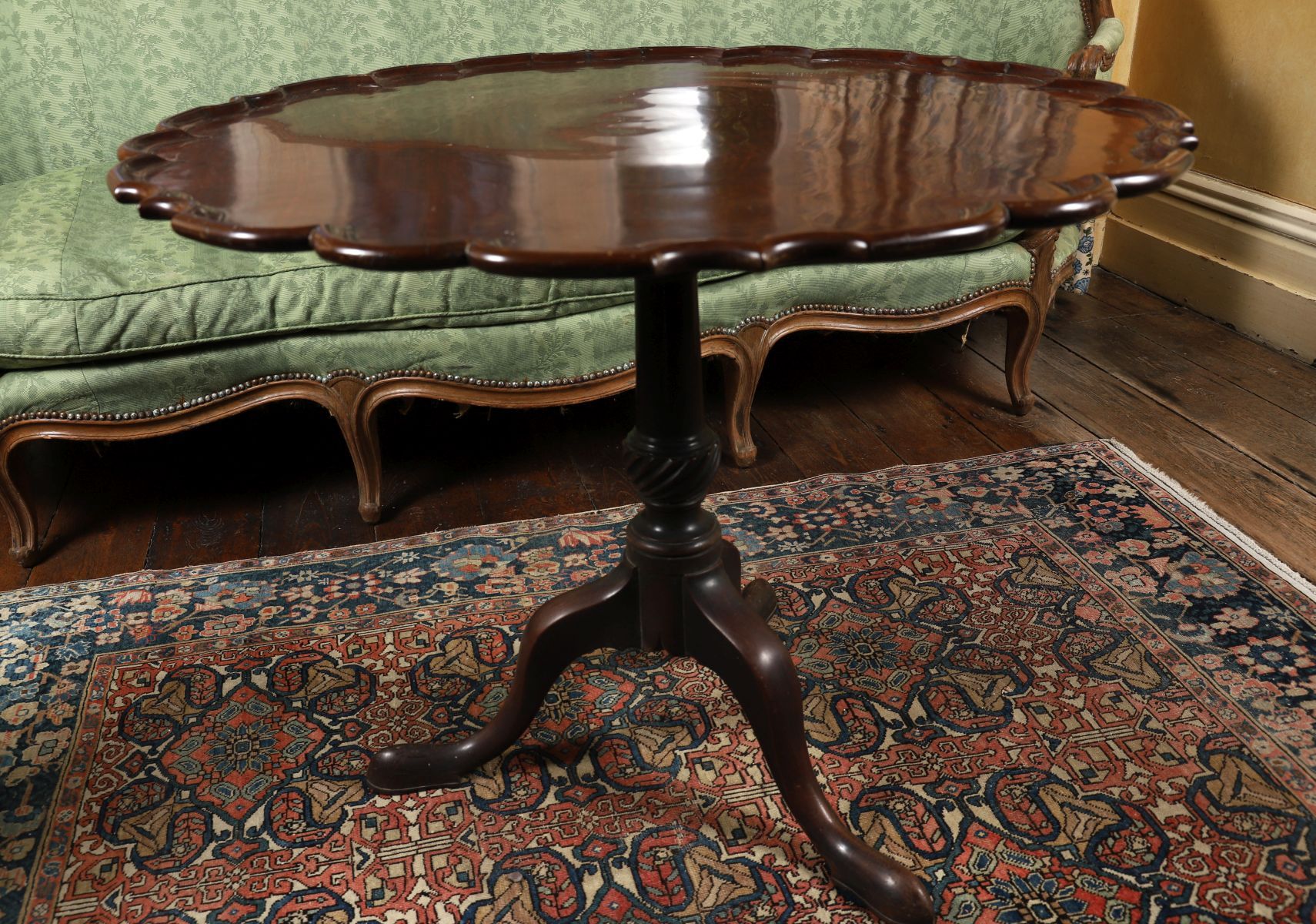 the circular top, raised on a turned stem and scroll legged pod.