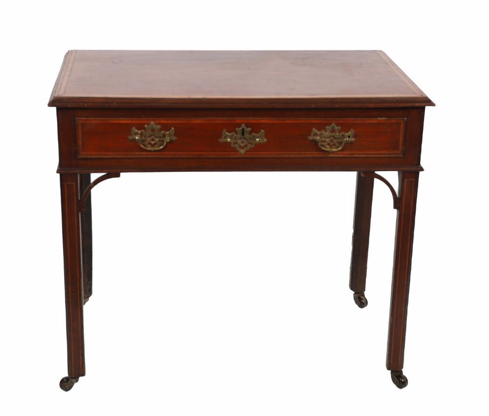 Lot 339 GEORGE III PERIOD MAHOGANY AND SATINWOOD INLAID SIDE TABLE
