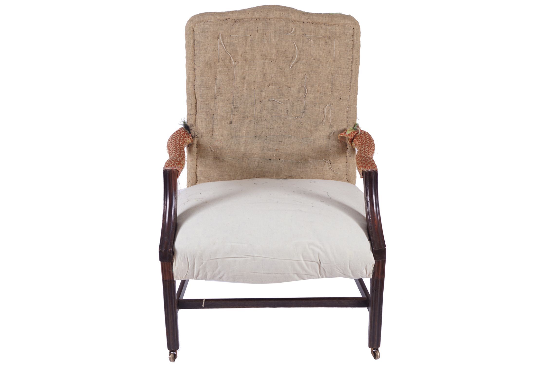 Lot 395 GEORGE III PERIOD MAHOGANY AND UPHOLSTERED GAINSBOROUGH CHAIR, CIRCA 1800