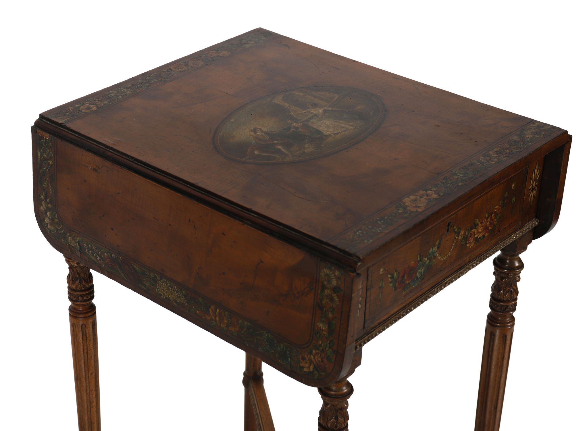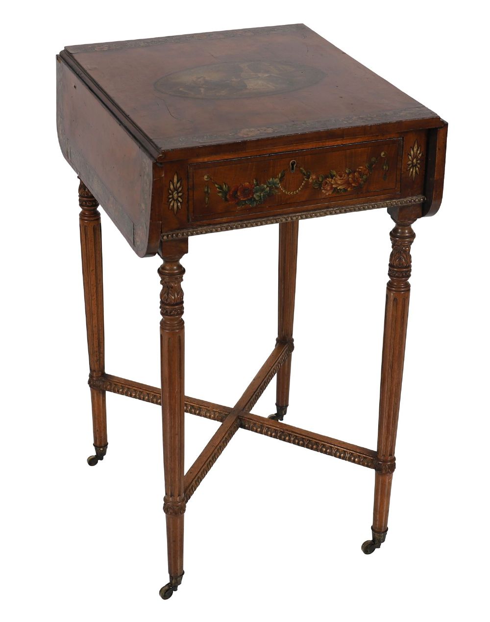 Lot 288 GEORGE III PERIOD SATINWOOD AND PAINTED PEMBROKE TABLE