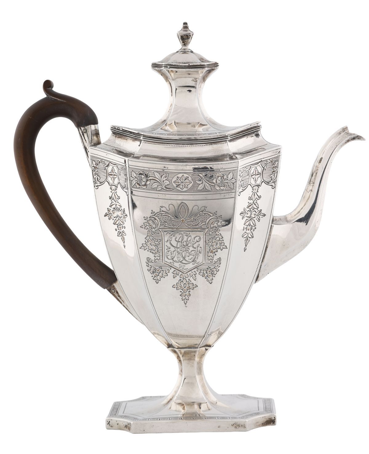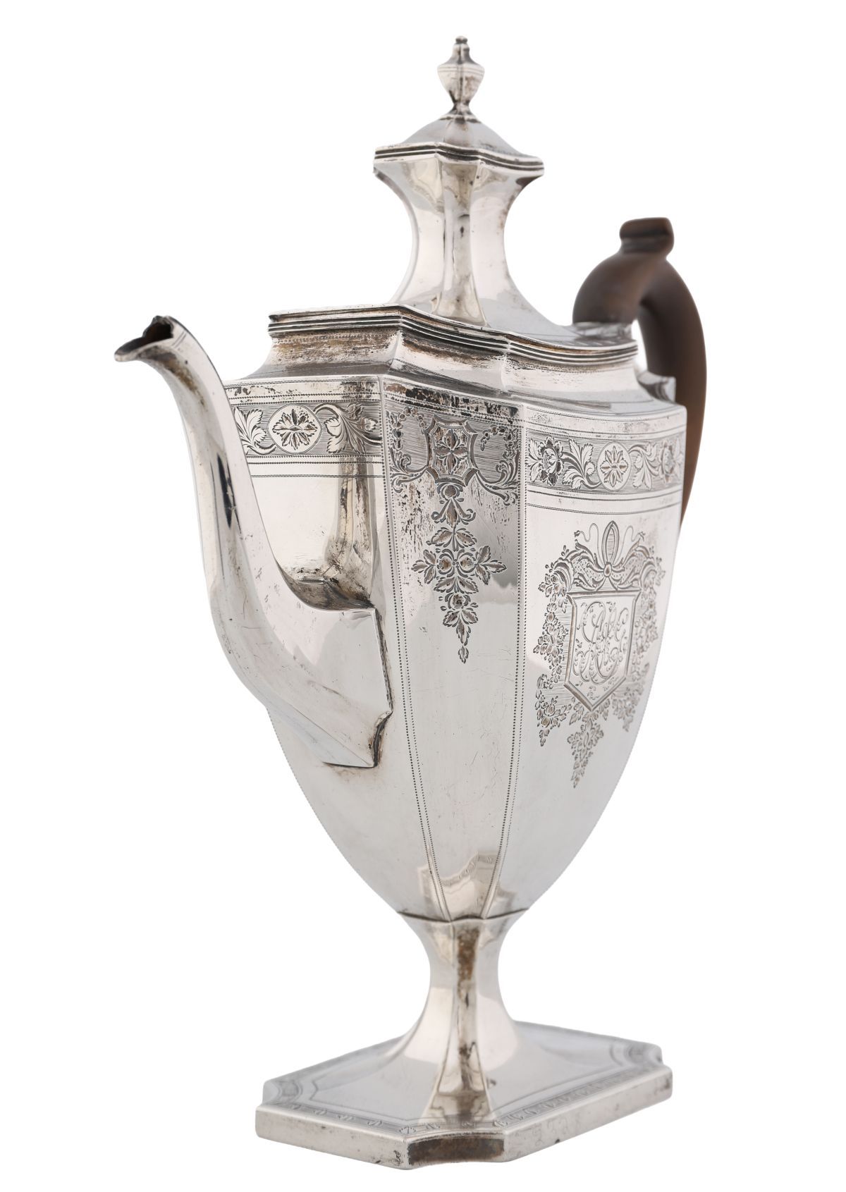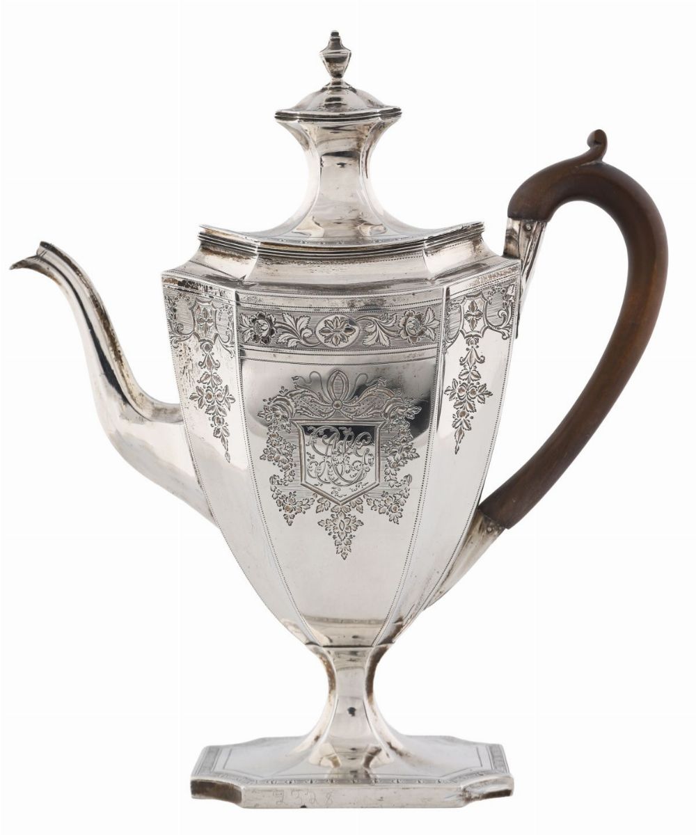 Lot 769 GEORGE III SILVER COFFEE POT, JOHN ROBINS, LONDON 1795
