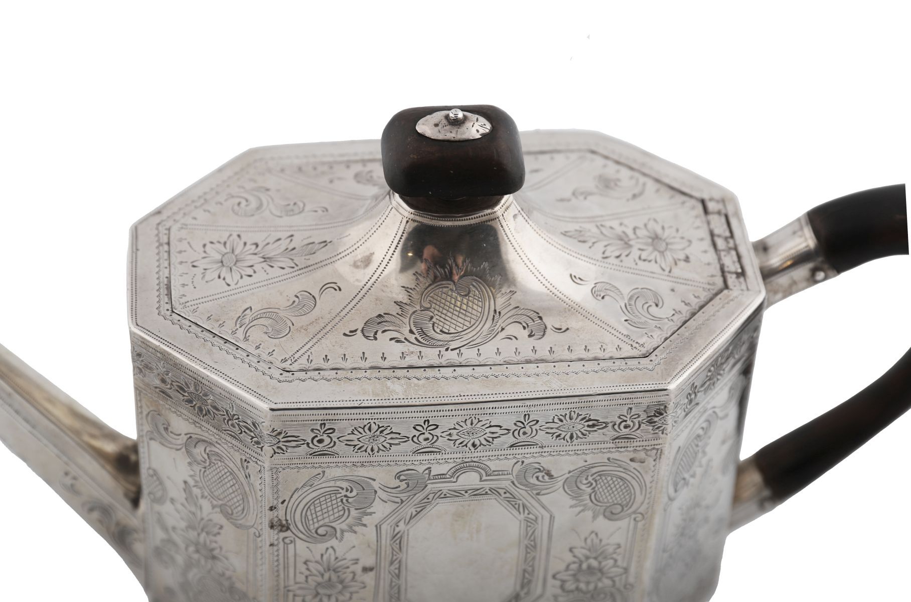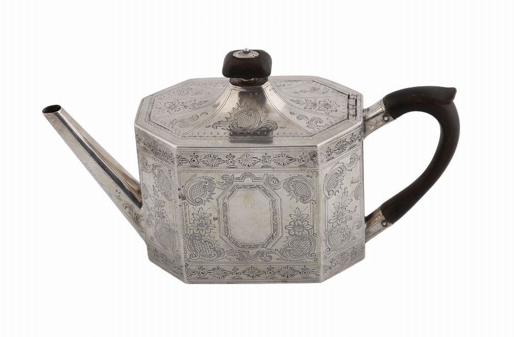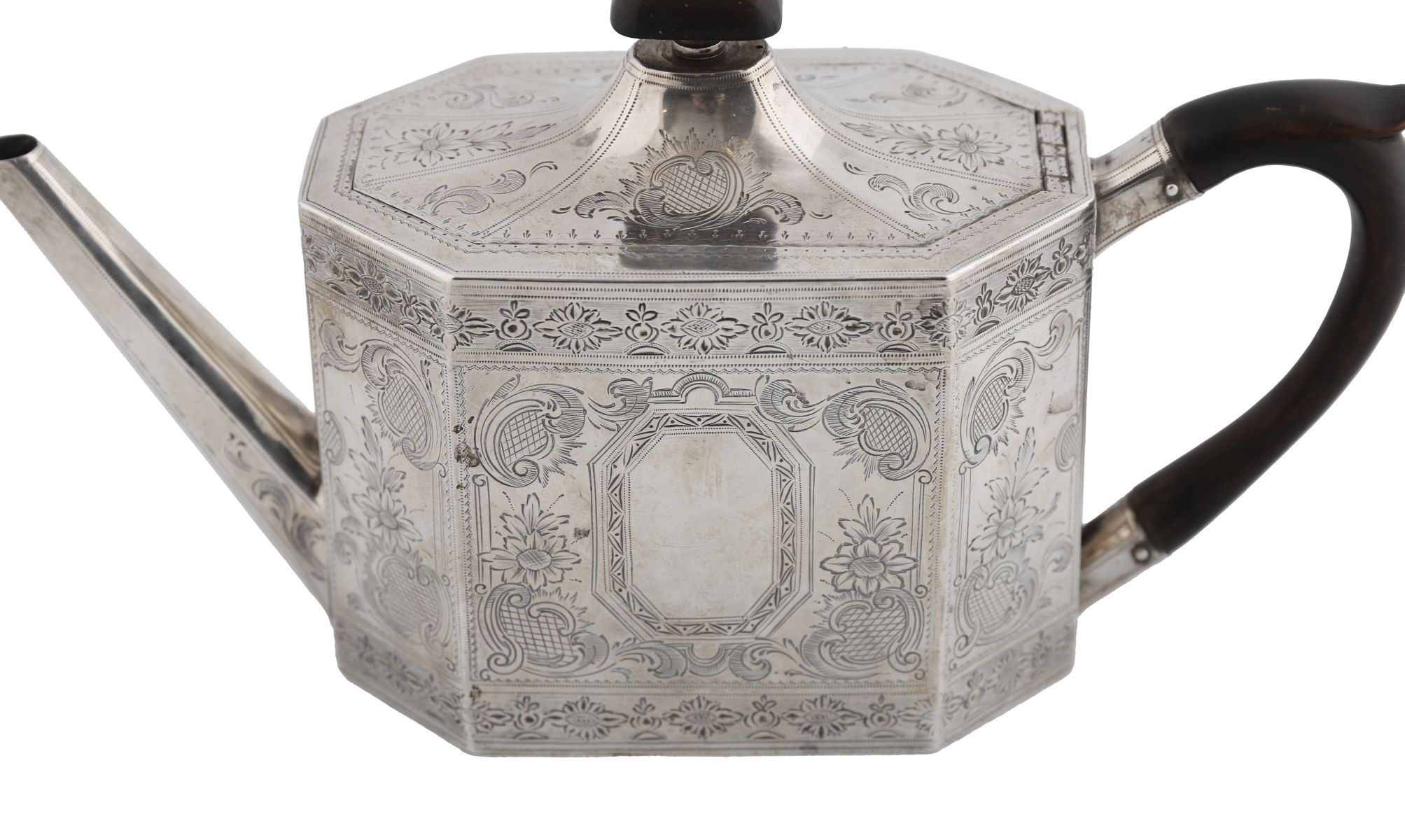 London 1879. Rectangular, engraved floral decoration, wooden handle and finial.