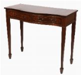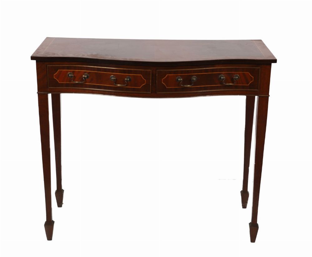 Lot 104 GEORGE III STYLE MAHOGANY SERPENTINE BOXWOOD INLAID AND CROSSBANDED SIDE TABLE