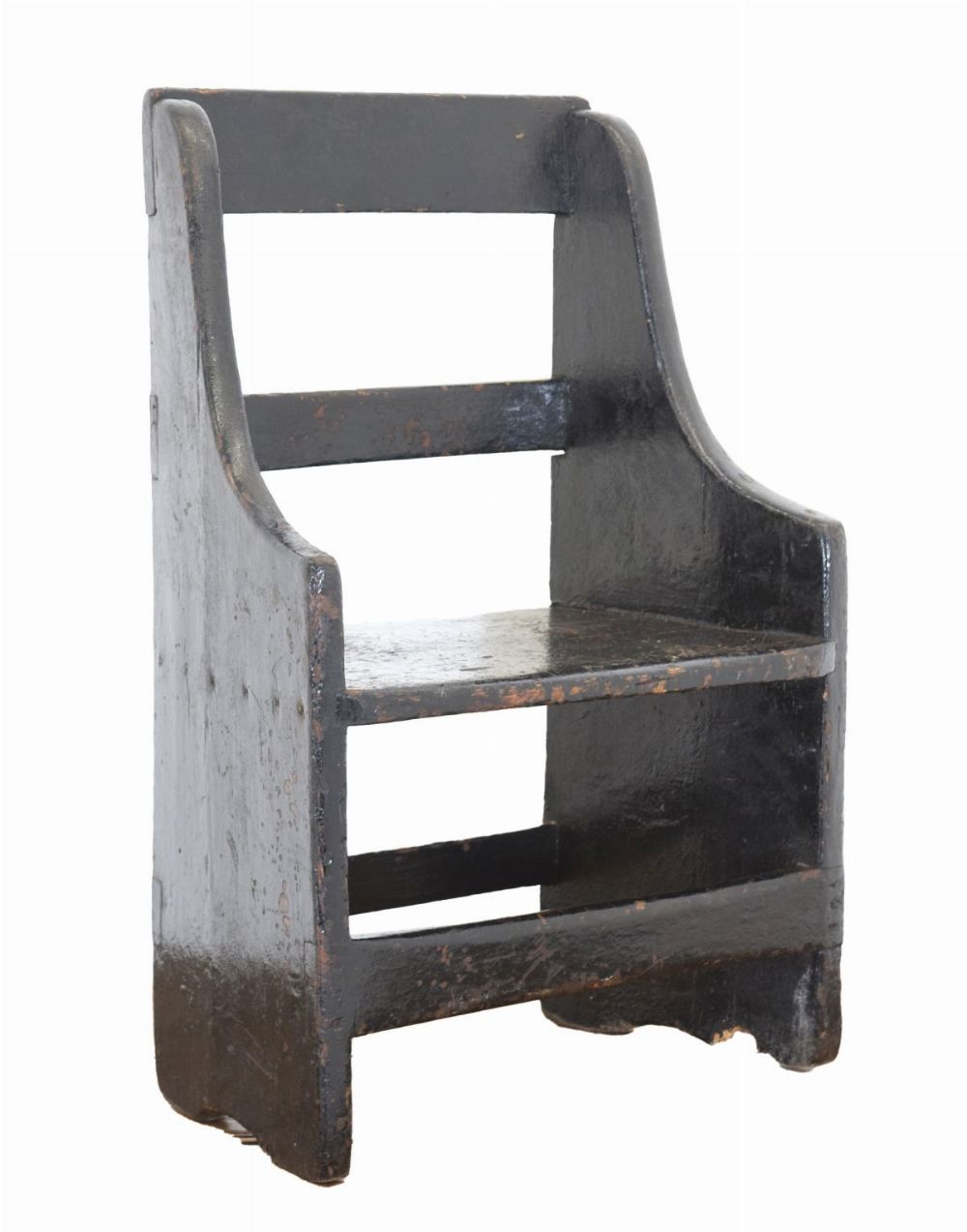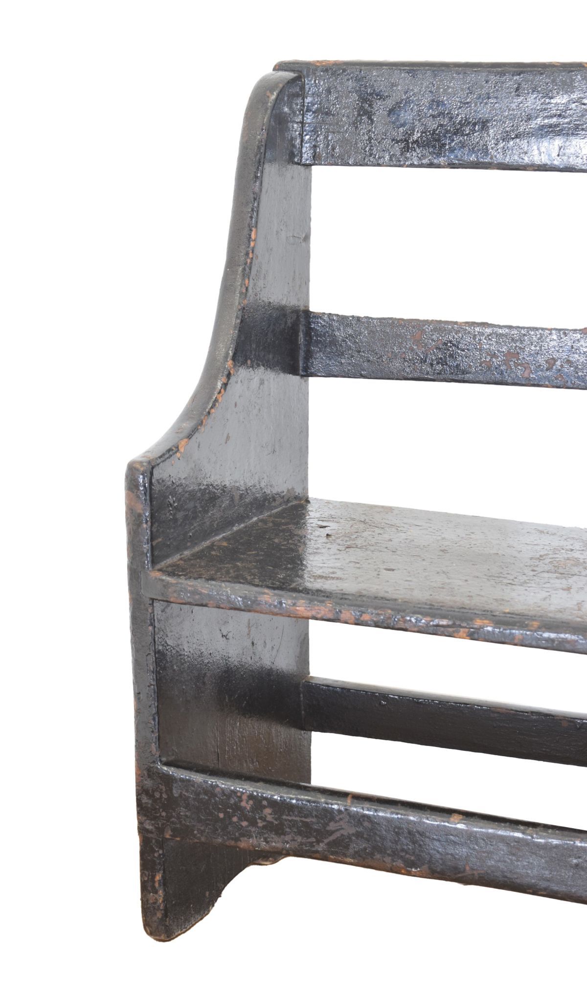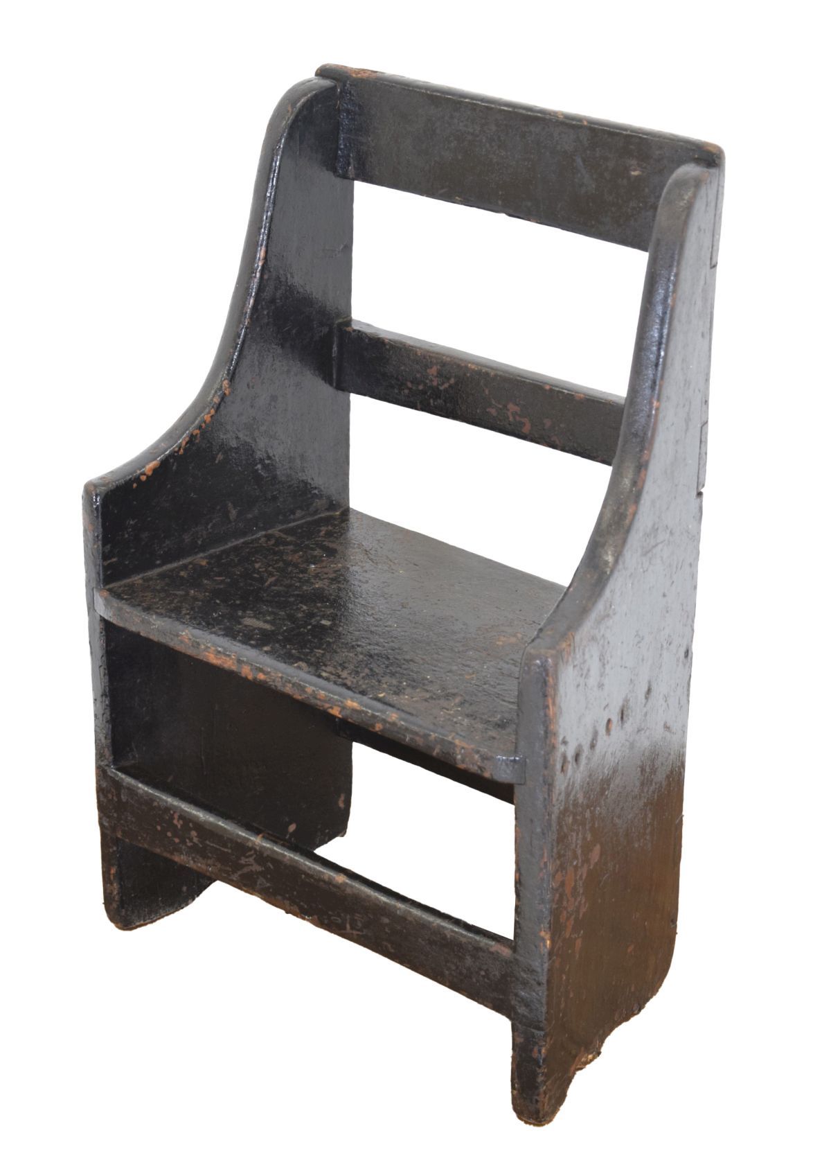 retaining original black paint, with simple rail back and square legs; an elegant example of early Irish children's furniture.