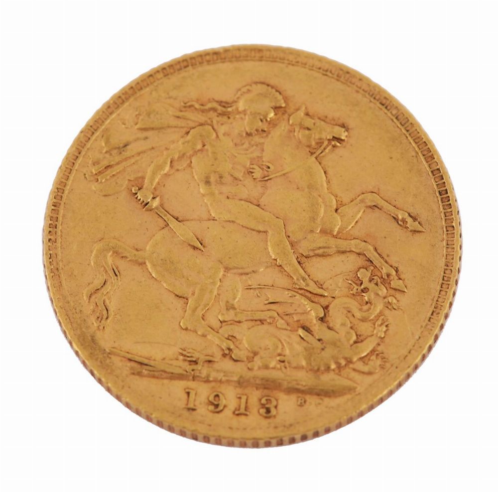 A 1913 gold sovereign, the reverse depicting St George and the Dragon.