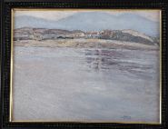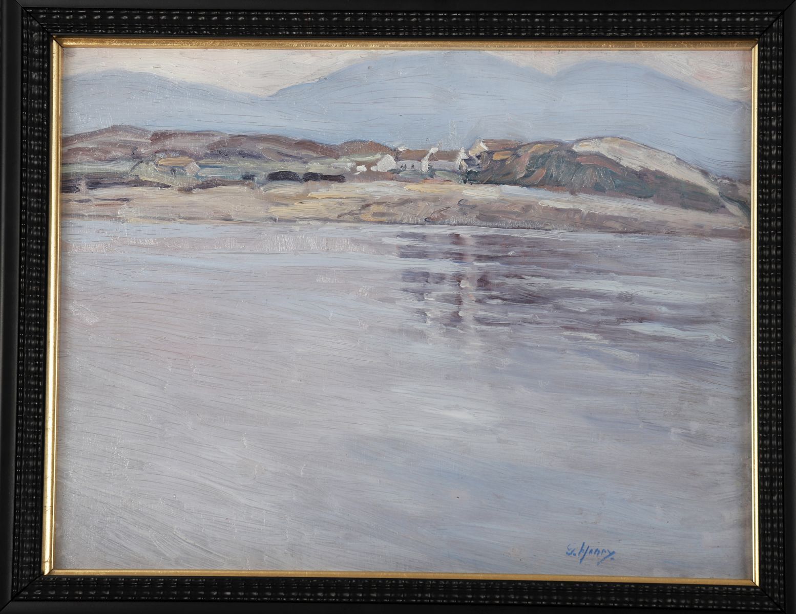 One of Grace Henry's finest landscape paintings, this view looking across an inlet on Achill Island has a freshness, vibrancy and sense of open space that suggests it was almost certainly painted 'en plein air'. The viewpoint may be from Sraheens, just west of Achill Sound, with Knocklettragh mountain in the background. In the foreground, Henry depicts a wide expanse of sea and wet sand, rendered in delicate tones of pale blue and ivory. On the shore opposite, a group of thatched cottages, nestled into the landscape, are reflected in pools of water. Henry often painted out of doors, striving to capture atmosphere and mood. There is an immediacy and intensity in her work that has long endeared her to art collectors with an eye for originality and feeling. Her 'Evening Star, Achill', painted in 1916, is now in the Hugh Lane Gallery.