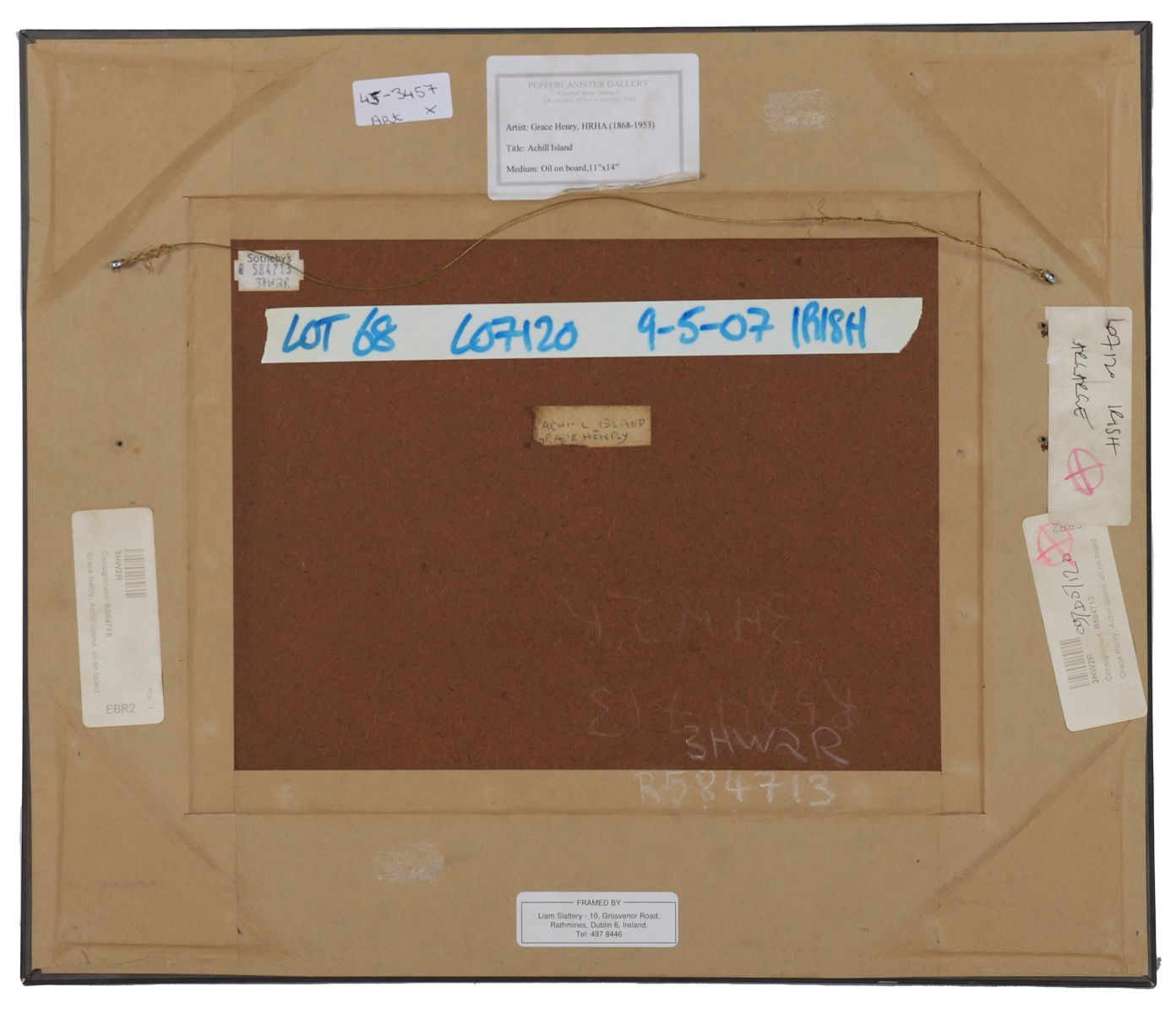 Delecluse Academy in Paris, where she also studied with Andre Lhote. In 1910 she and her husband Paul Henry left London to settle in the West of Ireland, on remote Achill Island, where they painted landscapes and local scenes. While Grace Henry's still-lives, figures, portraits and landscapes are accomplished essays in colour and the expressive use of paint,