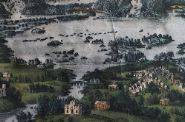 A collection of hand-coloured engravings, largely American and Irish views and historical scenes, each mounted and framed, including landscapes, topographical views, and battle scenes of the mid-19th century.