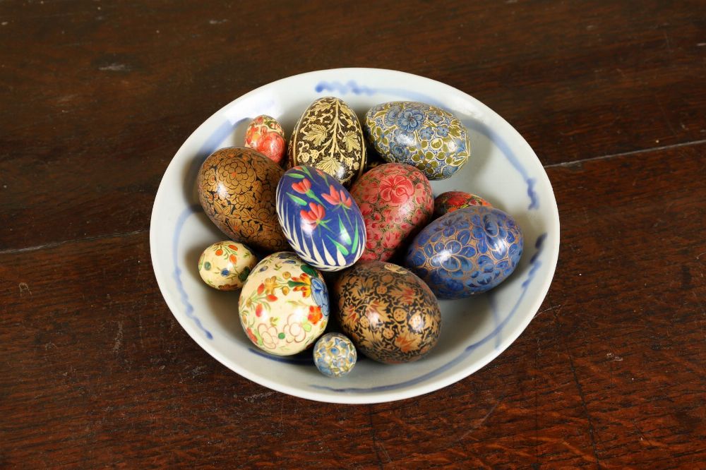 Lot 203 GROUP OF EIGHT PAINTED PAPIER-MÂCHÉ EGGS