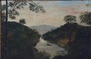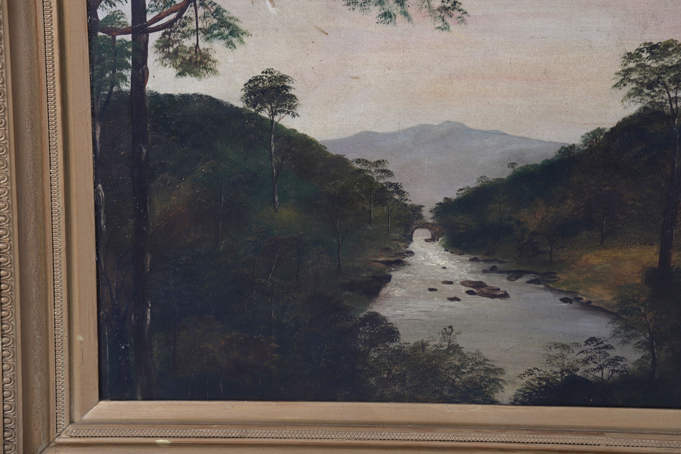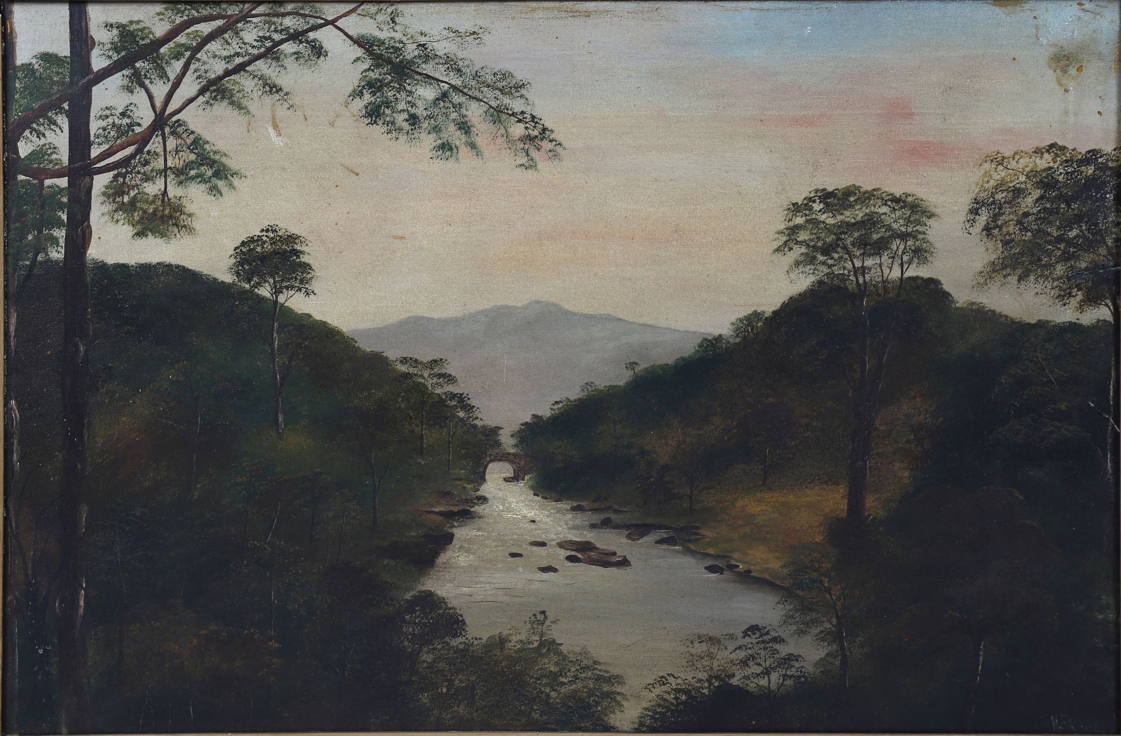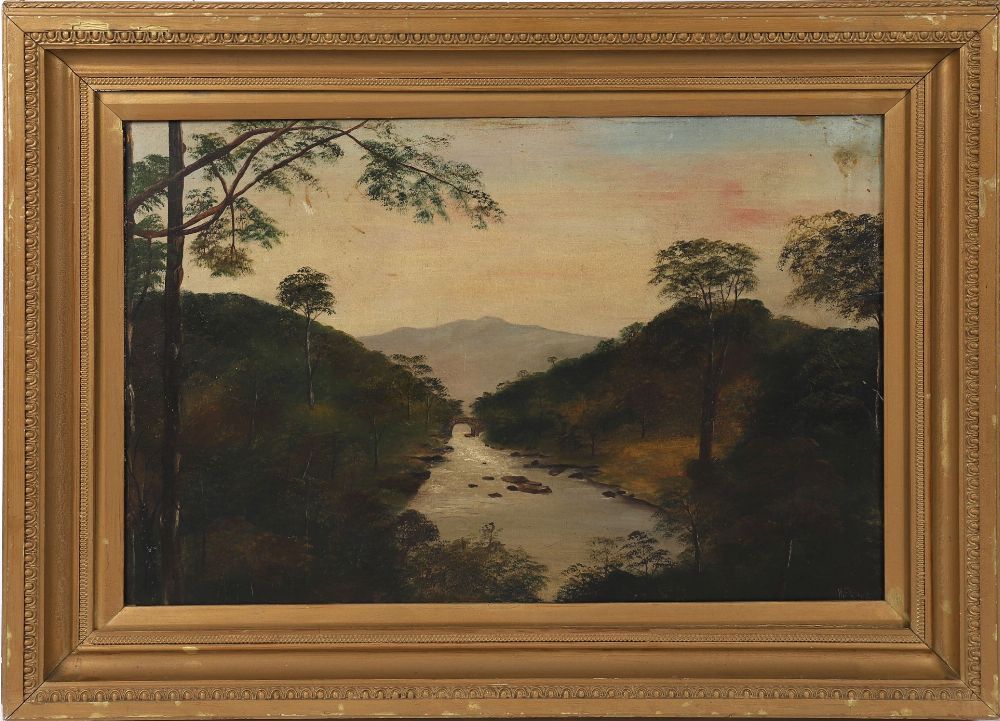 Meeting of the waters, Killarney. Signed oil on canvas. Enclosed in a gilt frame.