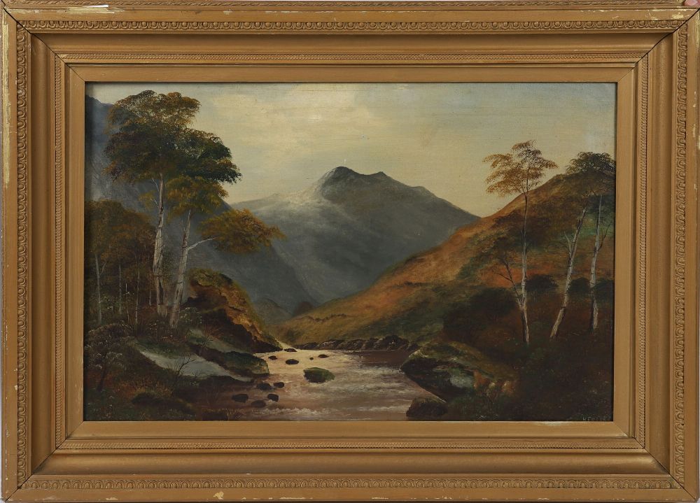 Glenroe, Scotland. Signed oil on canvas. Enclosed in a gilt frame.