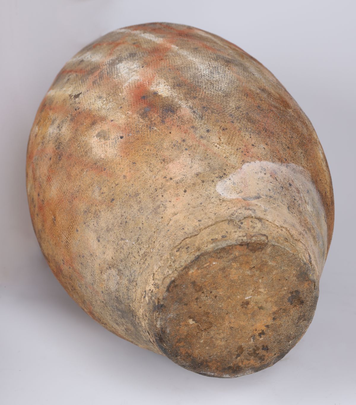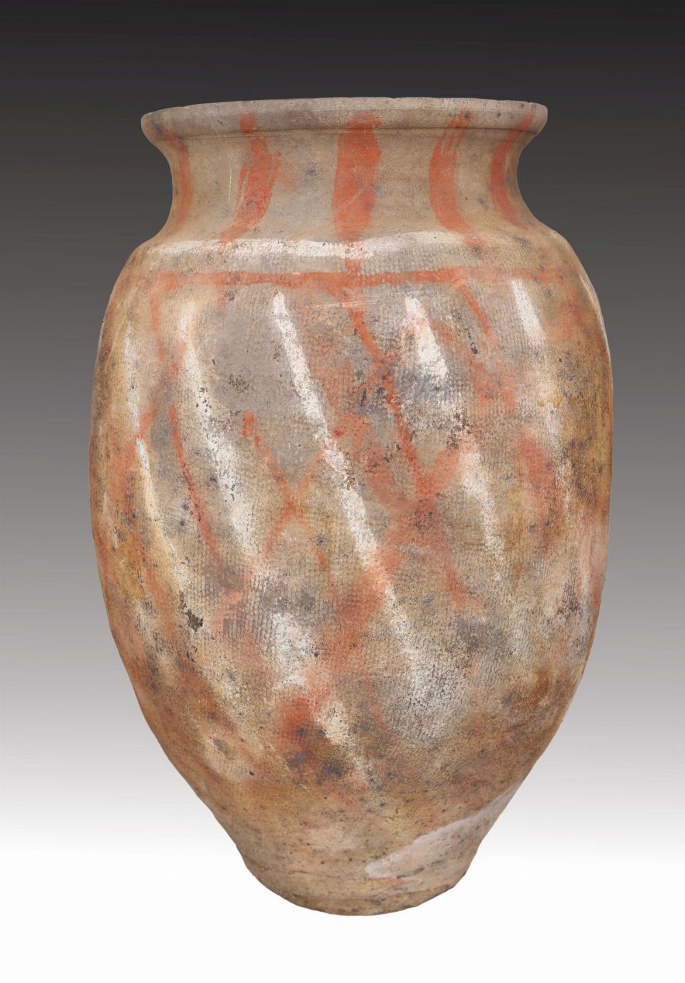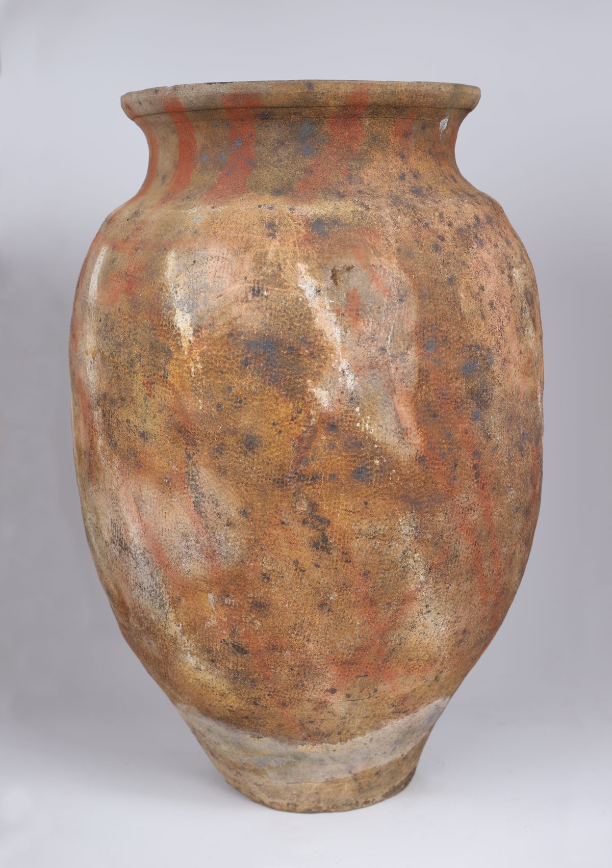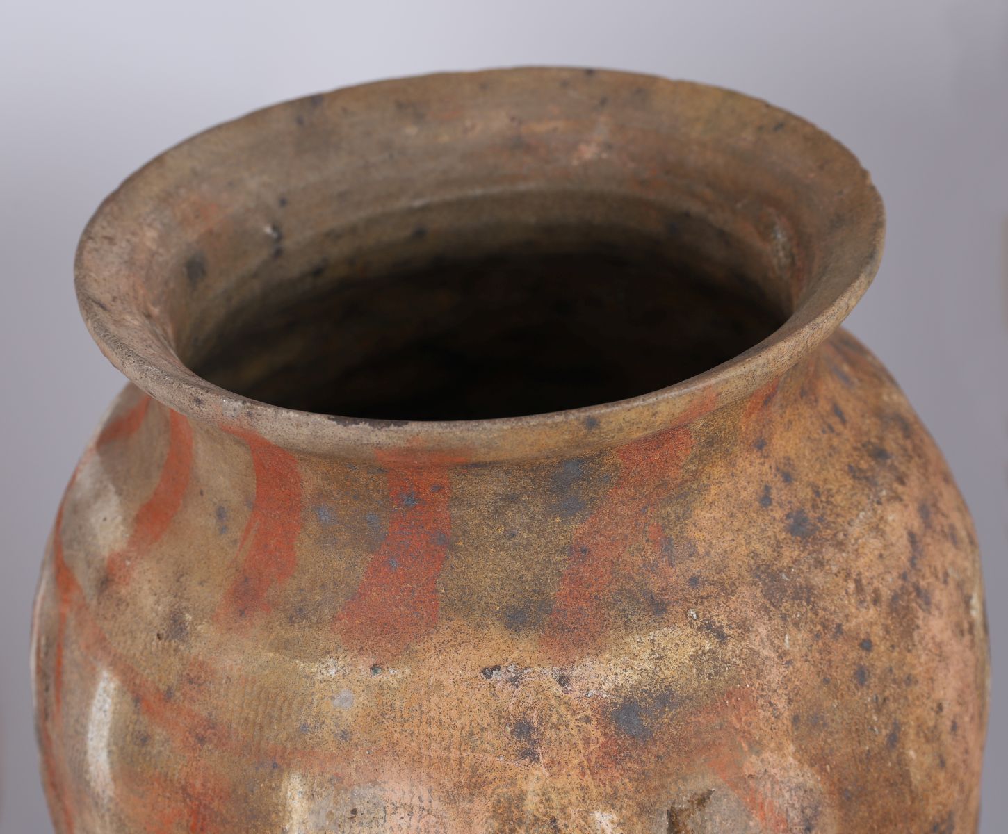 Lot 123 HAN DYNASTY TERRACOTTA JAR WITH RUSSET AND WHITE STRIATIONS