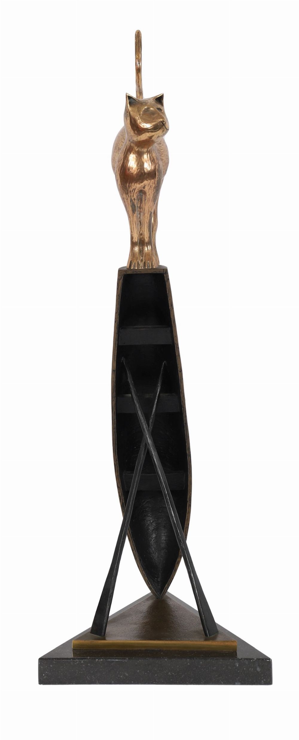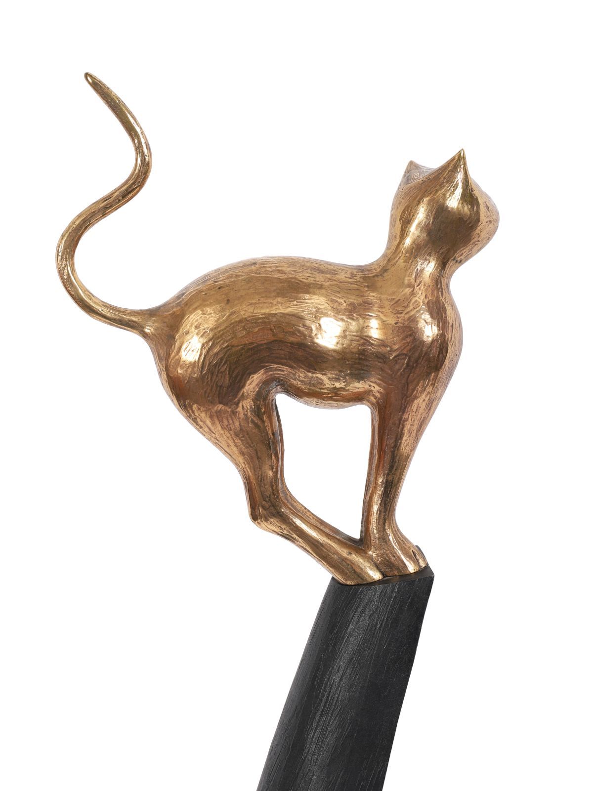 This work was inspired by one of the artist's numerous trips to the Aran Islands. The cat is a recurring theme in the artist's oeuvre and is an animal that Pollock is particularly interested in, along with birds. The Cat stands proudly on an upstanding Currach, which is supported by the two oars. The animal isn't concerned about balance as his curved tail assists with this, but more about what lies ahead as it looks into the distance.