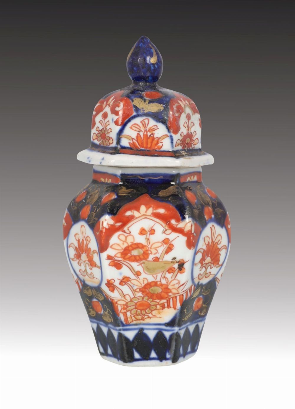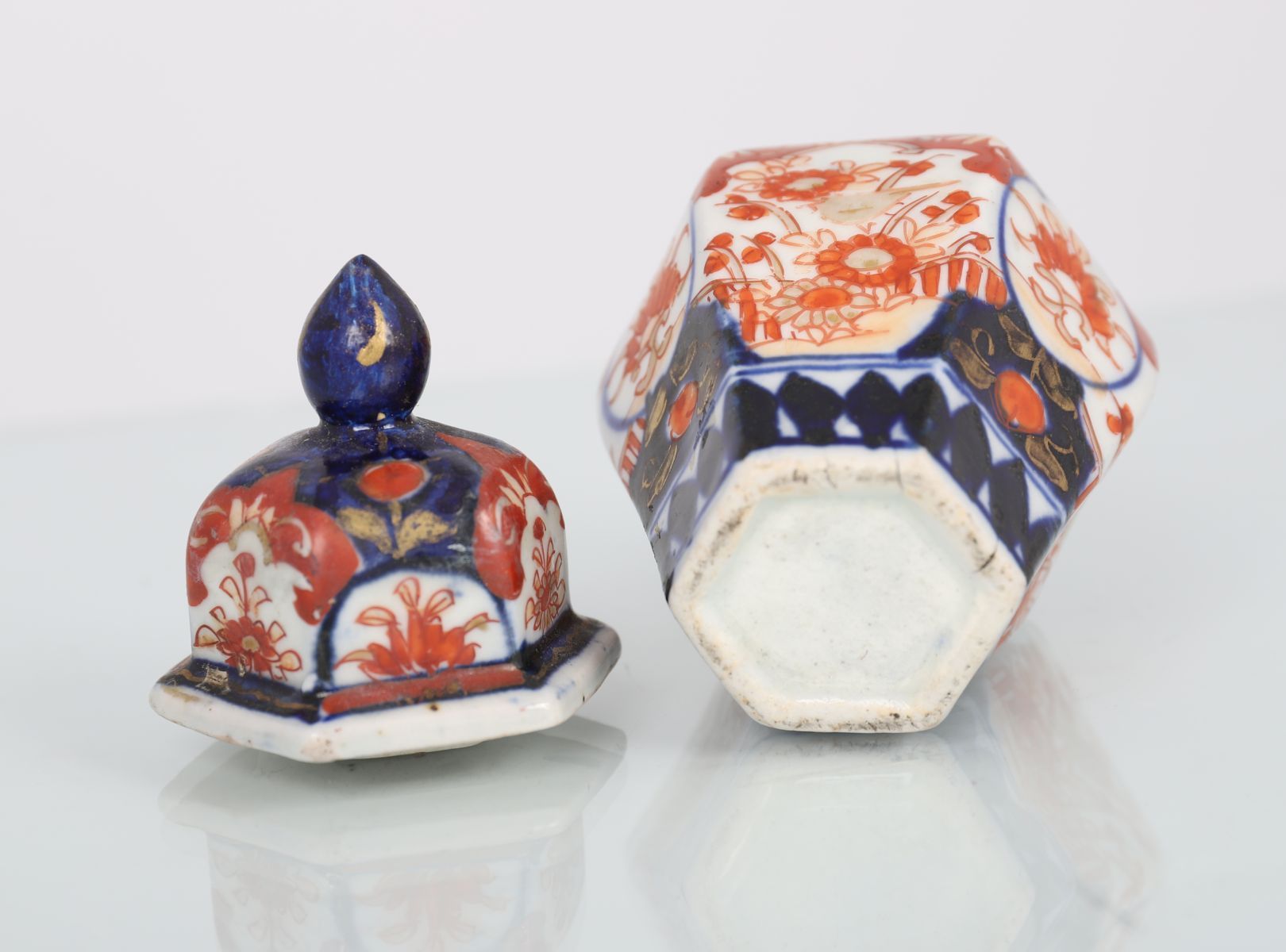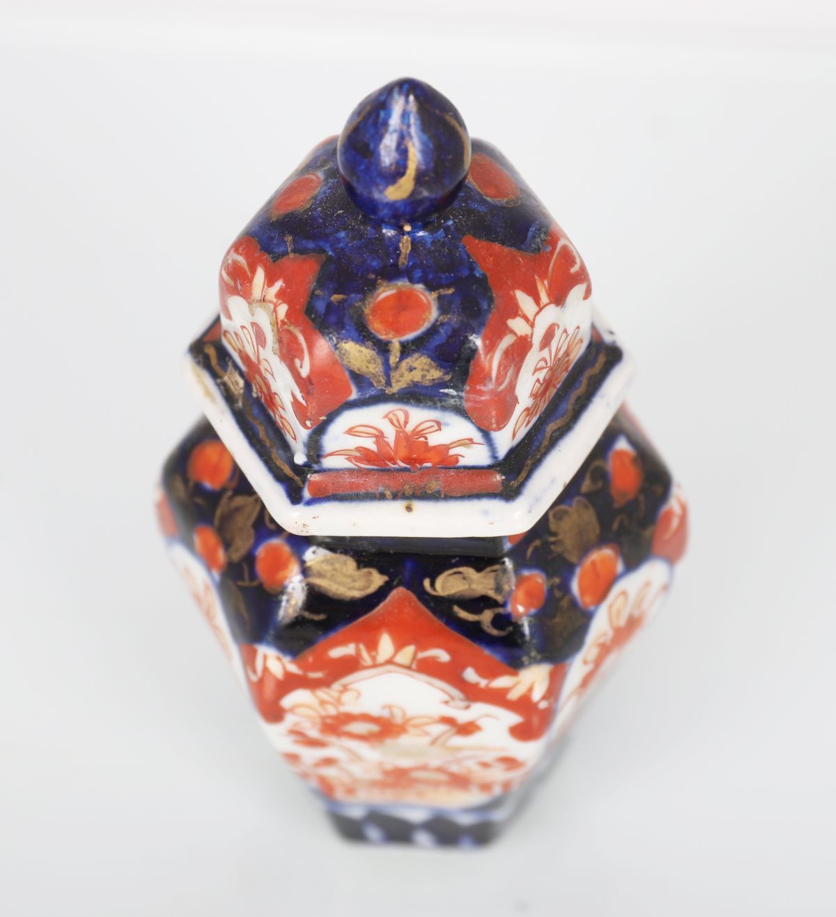 Lot 139 IMARI HEXAGONAL VASE AND COVER