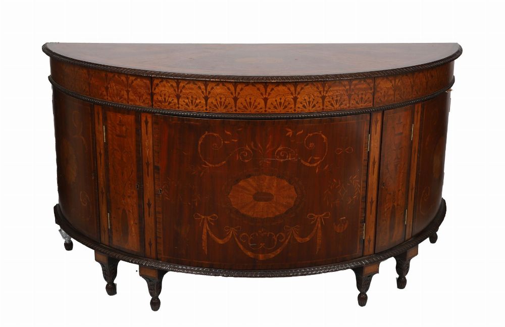 Lot 224 IMPORTANT ADAM STYLE MAHOGANY AND MARQUETRY COMMODE