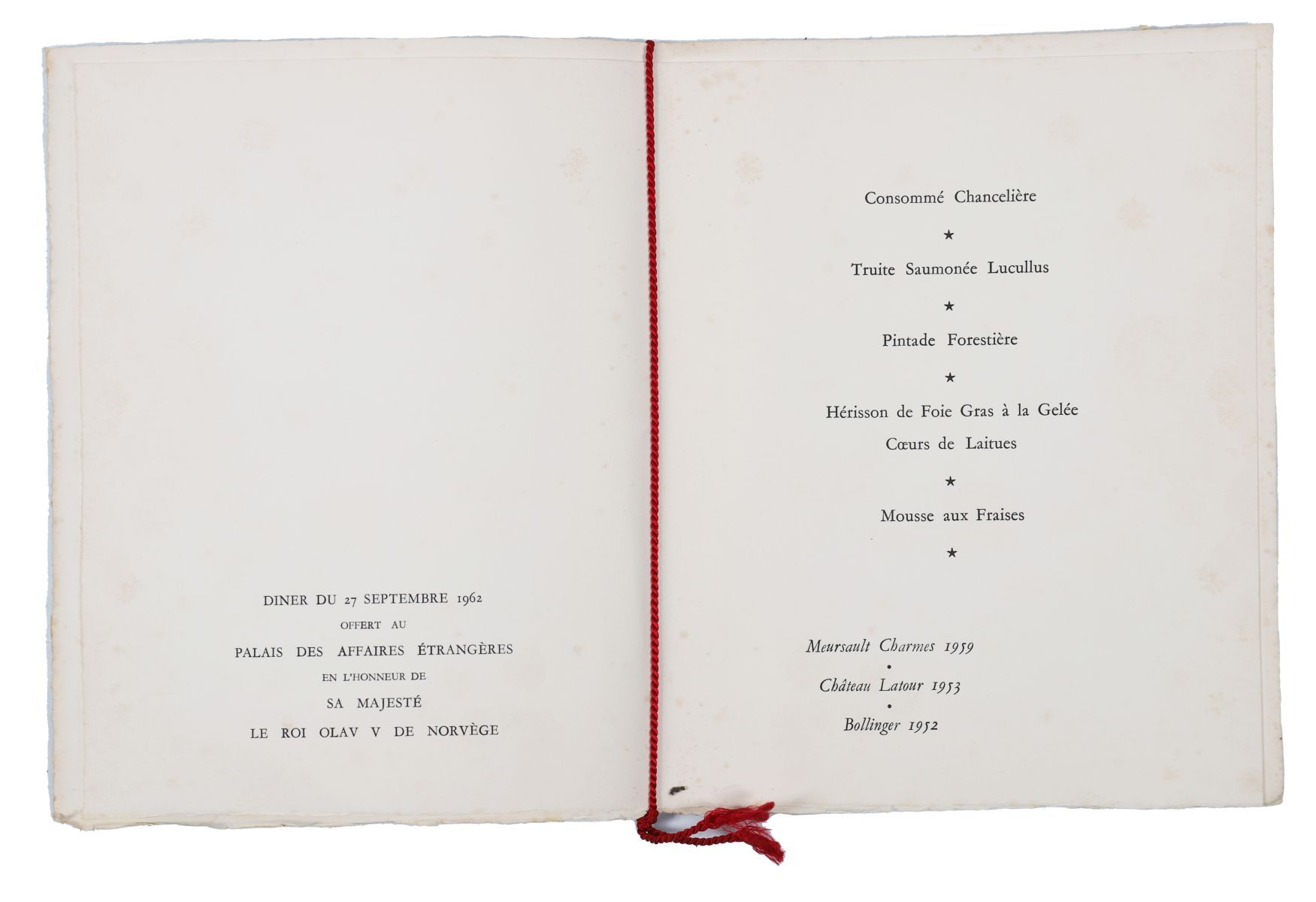 Lot 1460 IMPORTANT FRENCH QUAI D’ORSAY ROYAL STATE VISIT MENU — PRESIDENCY OF CHARLES DE GAULLE