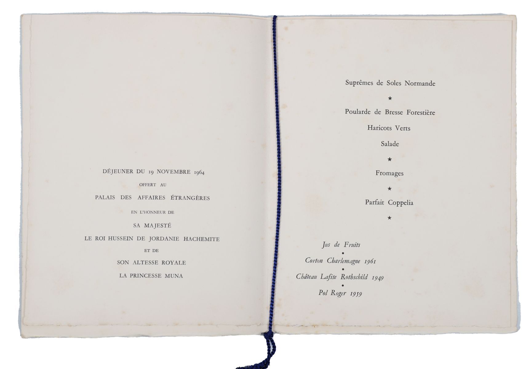 Lot 1468 IMPORTANT FRENCH QUAI D’ORSAY STATE DINNER MENU — PRESIDENCY OF CHARLES DE GAULLE