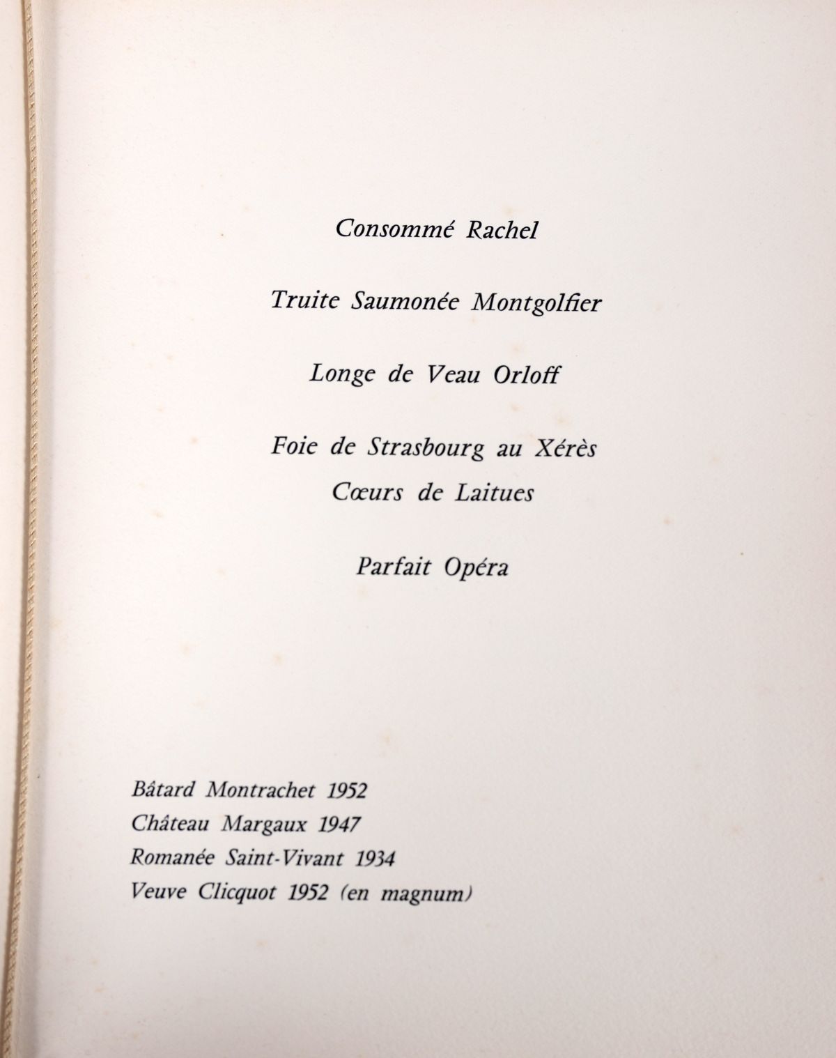 Lot 1475 IMPORTANT FRENCH QUAI D’ORSAY STATE DINNER MENU — PRESIDENCY OF CHARLES DE GAULLE