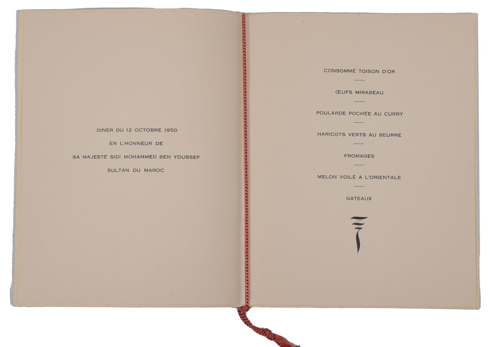 Lot 1467 IMPORTANT FRENCH QUAI D’ORSAY STATE DINNER MENU — PRESIDENCY OF VINCENT AURIOL