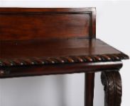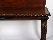 A highly important Irish Regency mahogany side table, circa 1820, the rectangular top with boldly carved gadrooned edge above a conforming frieze. The piece is supported by deeply carved acanthus scroll supports, terminating in robust hairy paw feet.