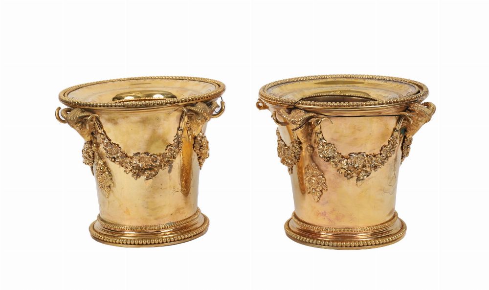 Lot 184 IMPORTANT PAIR OF CRESTED AND GILDED SHEFFIELD WINE COOLERS