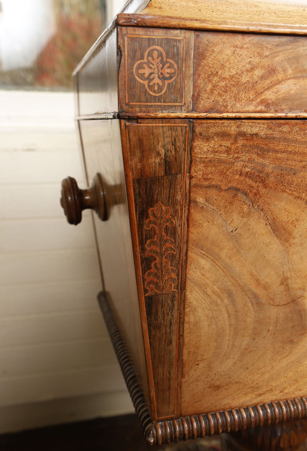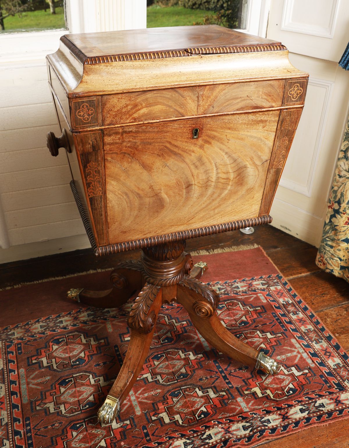 Lot 1 IMPORTANT REGENCY PERIOD MAHOGANY AND BOXWOOD INLAID WINE CELLARETTE
