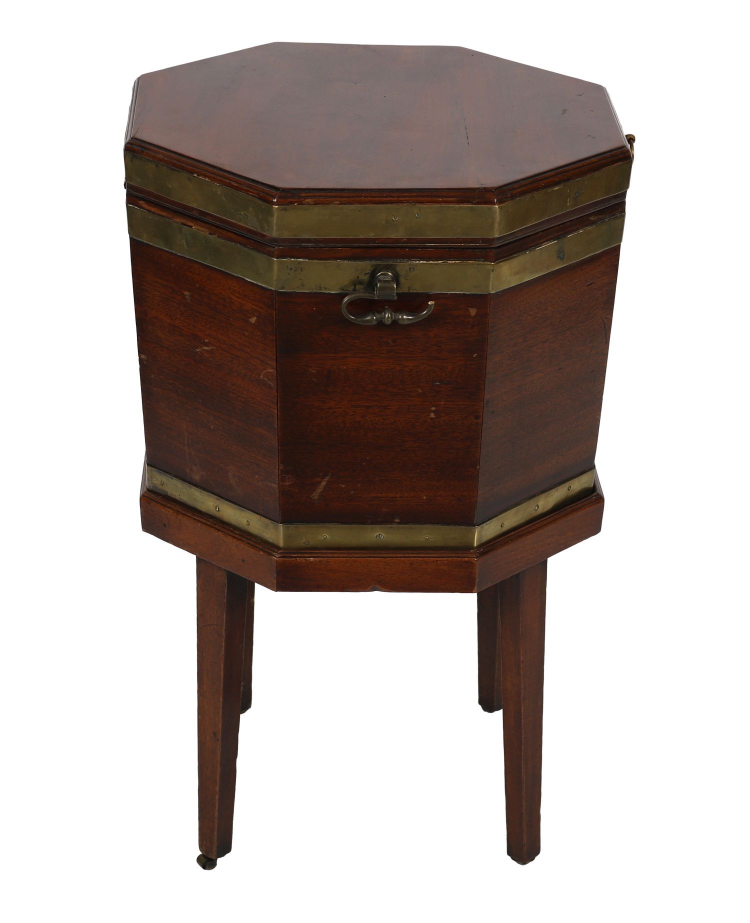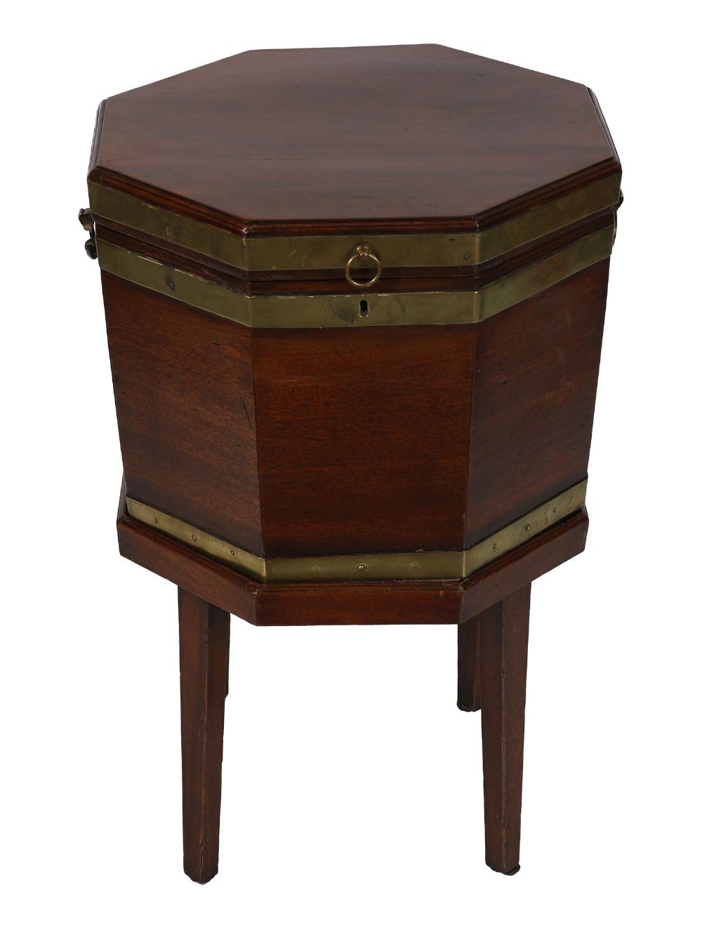 Lot 320 IMPRESSIVE GEORGIAN BRASS-BOUND MAHOGANY OCTAGONAL CELLARETTE