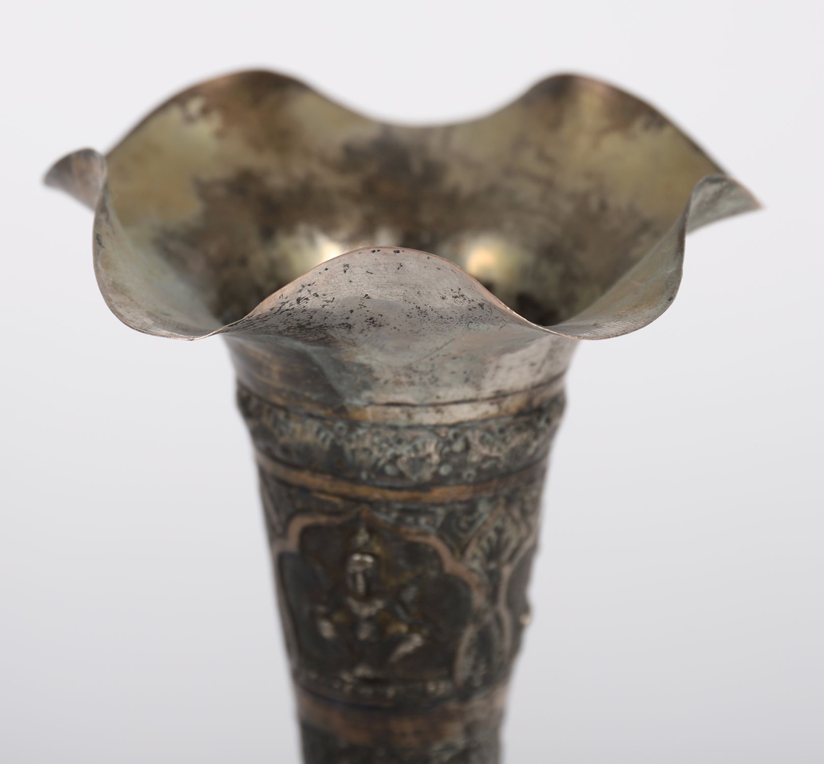 Lot 916 INDIAN SILVERED COPPER TRUMPET VASE