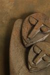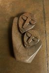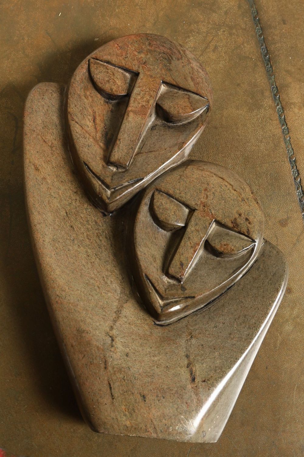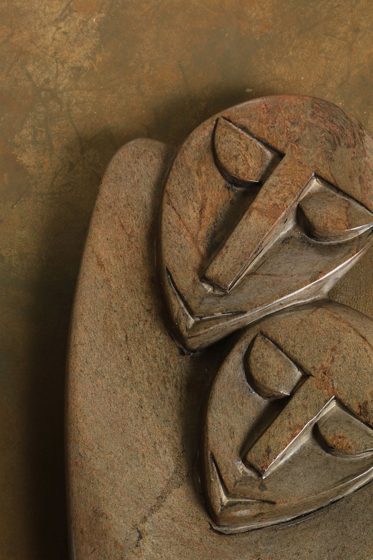 Carved in stylised form, depicting two figures in close embrace.