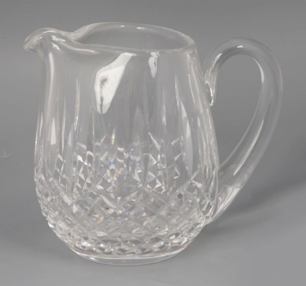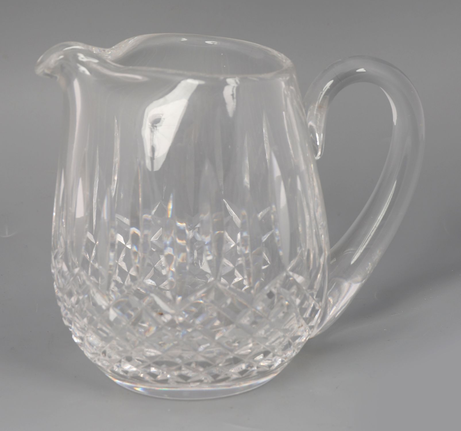 A finely cut Irish crystal water jug, with faceted body, star-cut base, and applied loop handle.