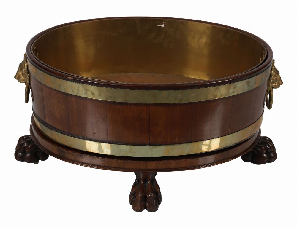 Lot 86 IRISH LATE 18TH / EARLY 19TH-CENTURY MAHOGANY AND BRASS-BOUND WINE COOLER