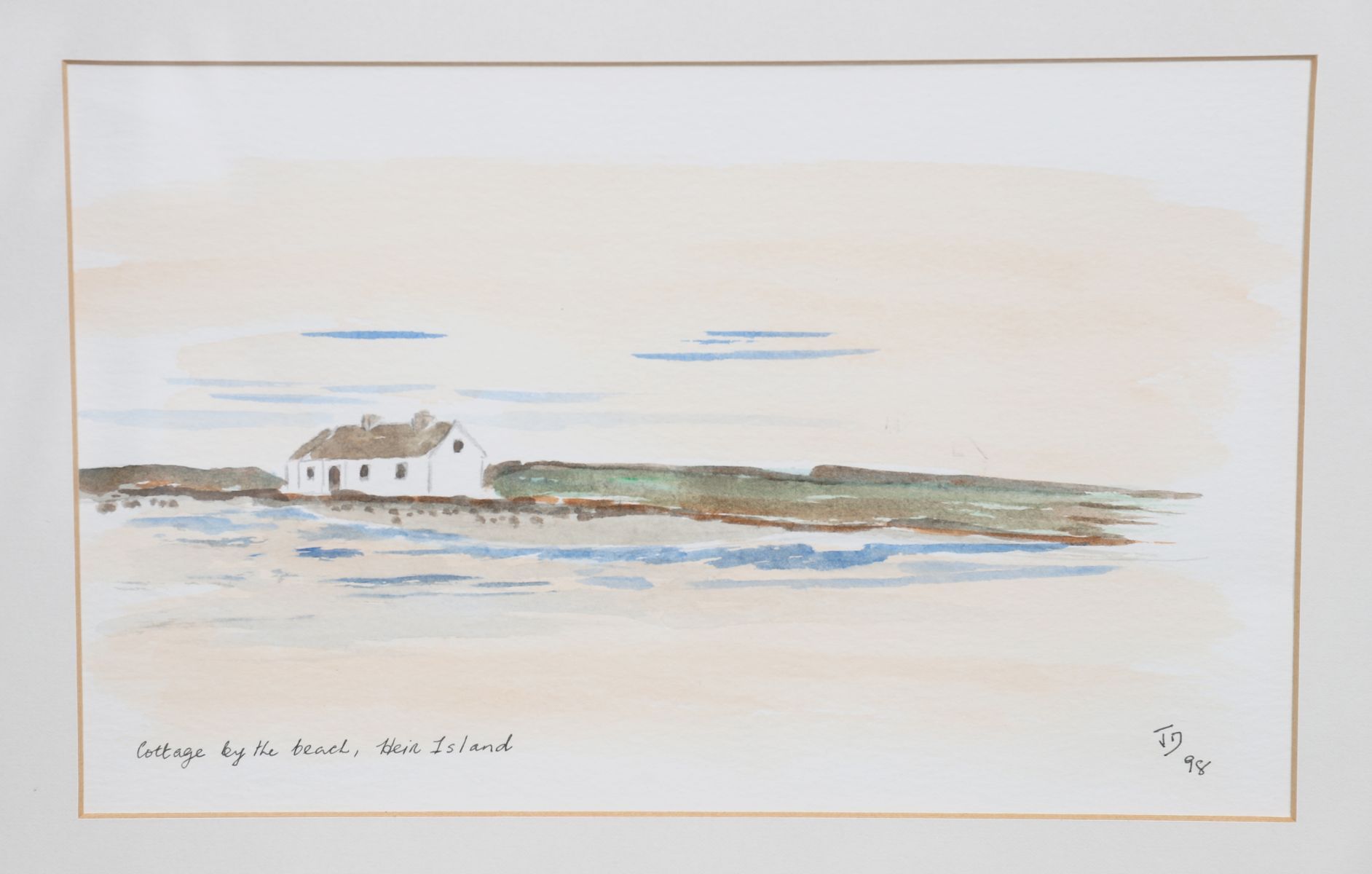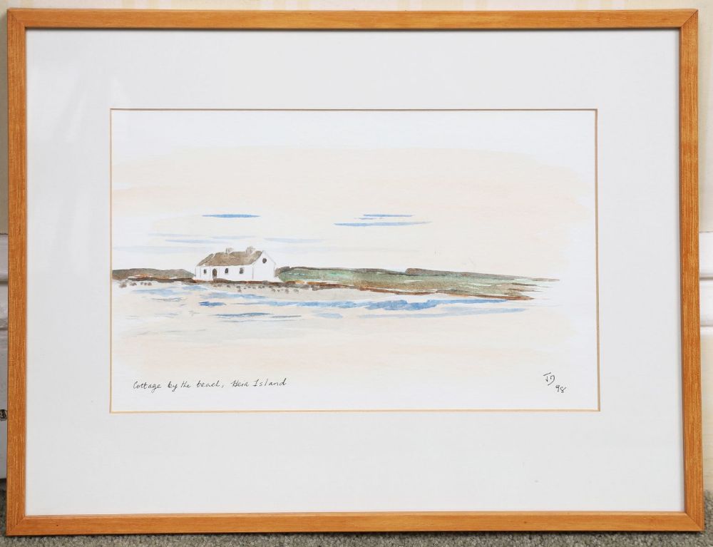 Cottage by the beach. Heir Island. Signed watercolour. Dated 1998.