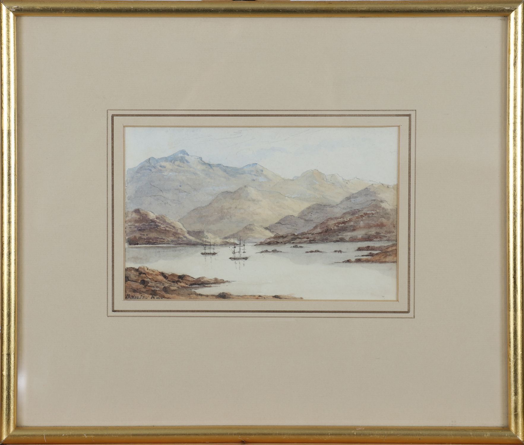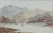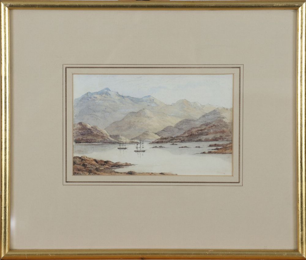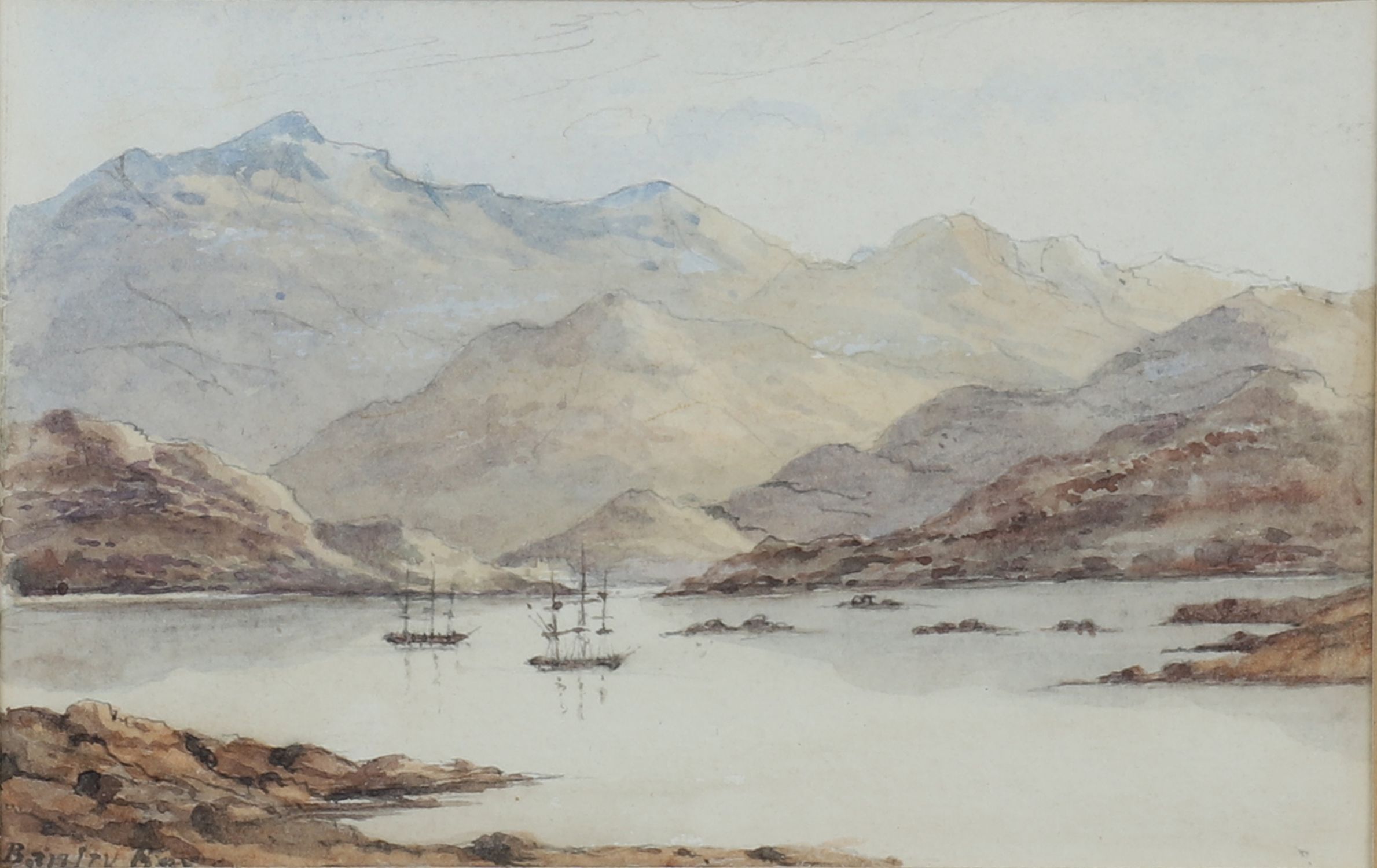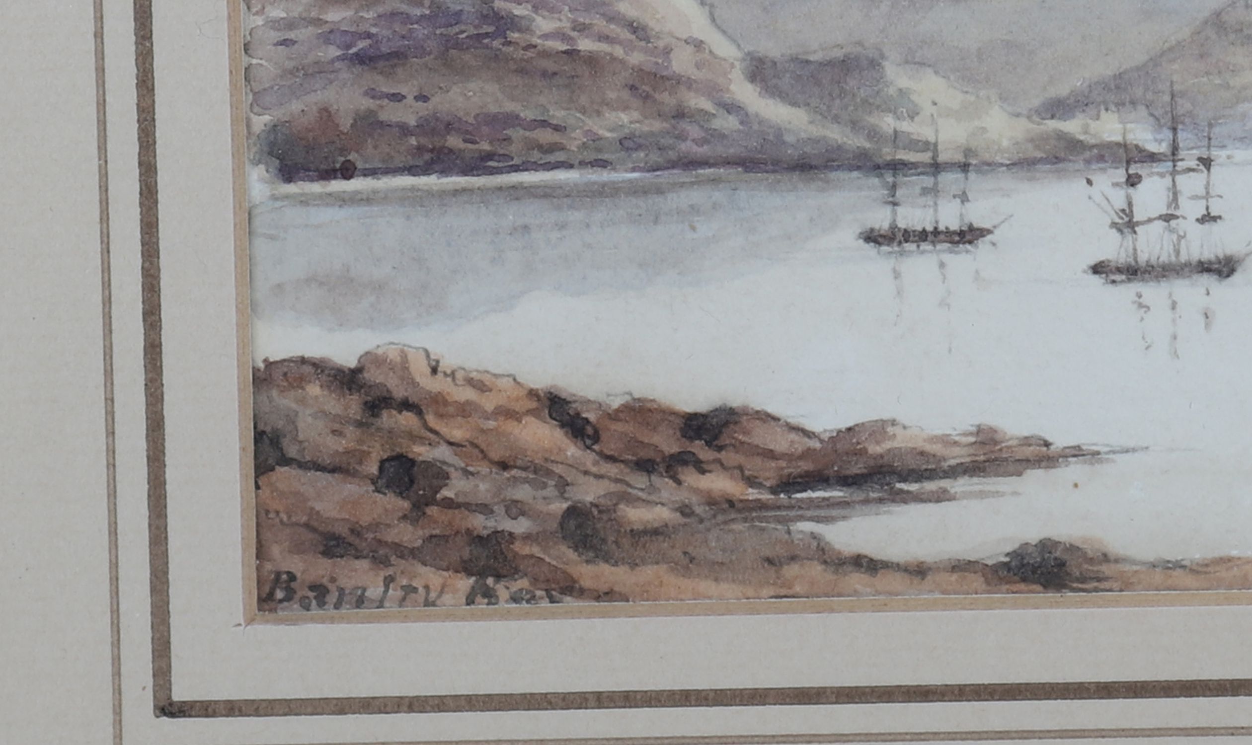 A delicate watercolour view of Bantry Bay with sailing vessels and mountains in the background. Finely detailed and unsigned.