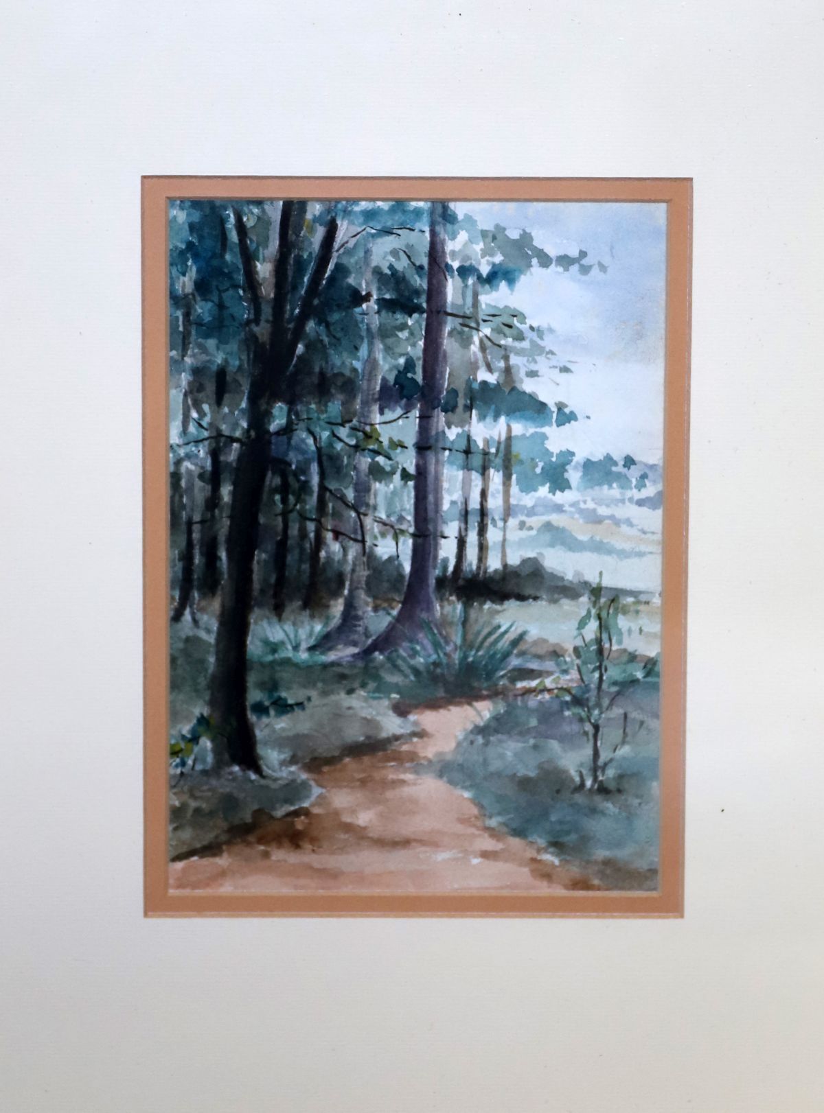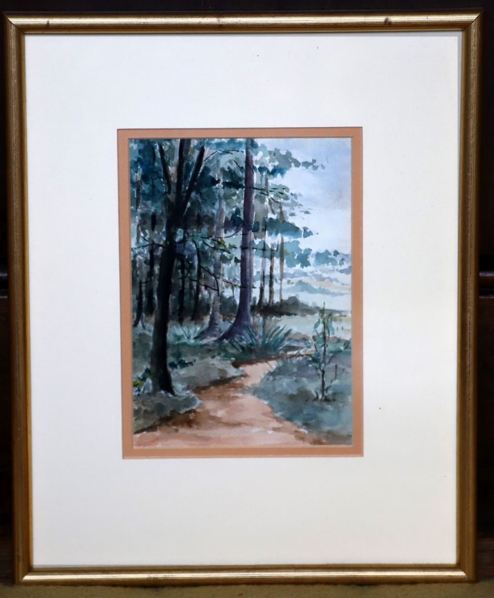 Irish School, wooded landscape, watercolour on paper, depicting a forest path beneath mature trees.