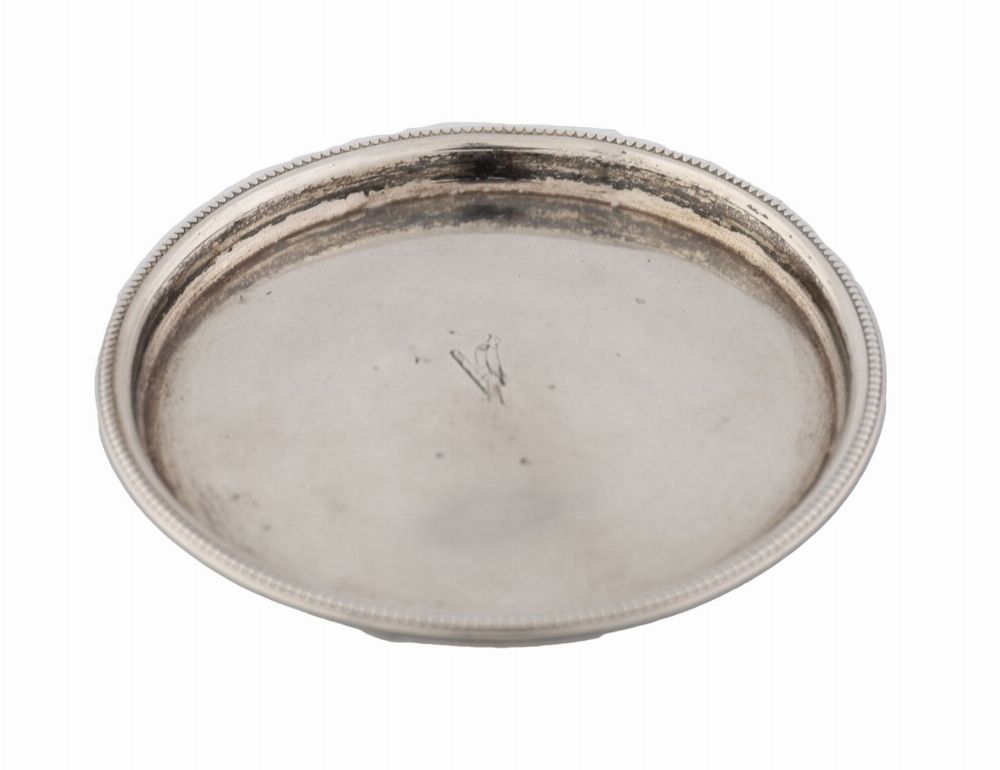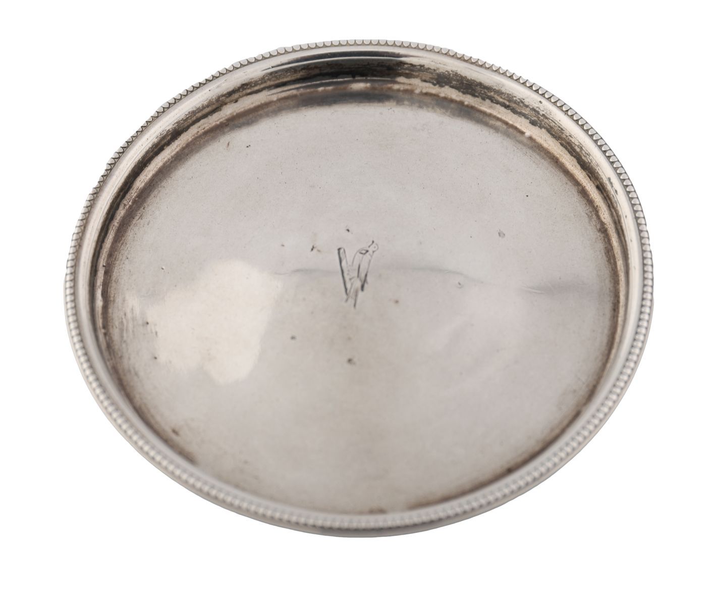 A Georgian Irish silver circular tray by William Bond, of plain polished form with beaded rim. Weight 31 g