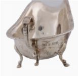 Dublin, 1946. Of typical mid-20th-century form, with shaped rim, scroll handle, and raised on three shell-capped feet.