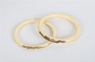 Lot 591 IVORY NECKLACE, CARVED PENDANT, AND TWO IVORY BANGLES
