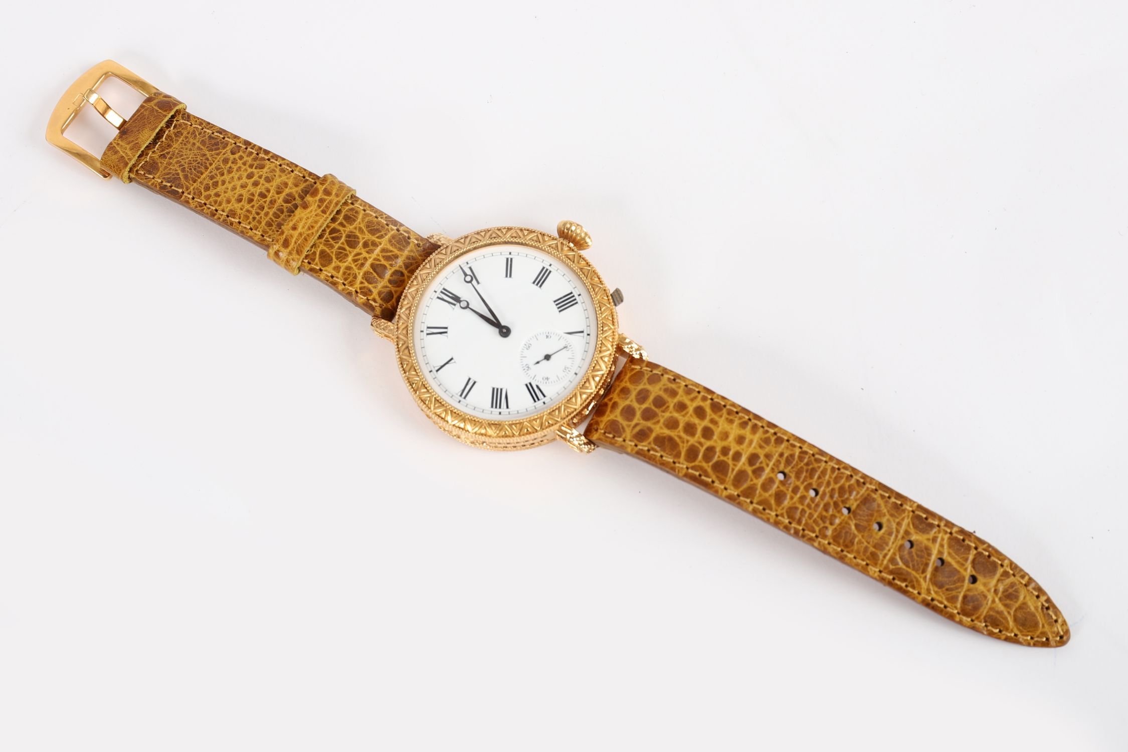 Manual Wind. Hand Made. Gold plated. Circa 1946. With leather strap