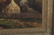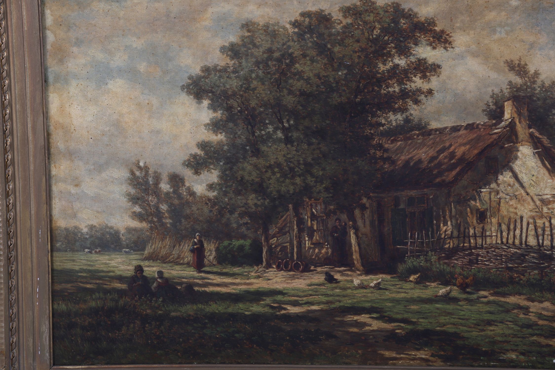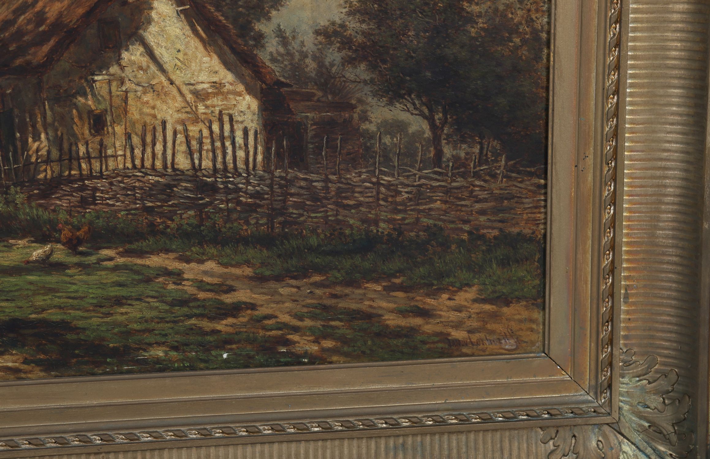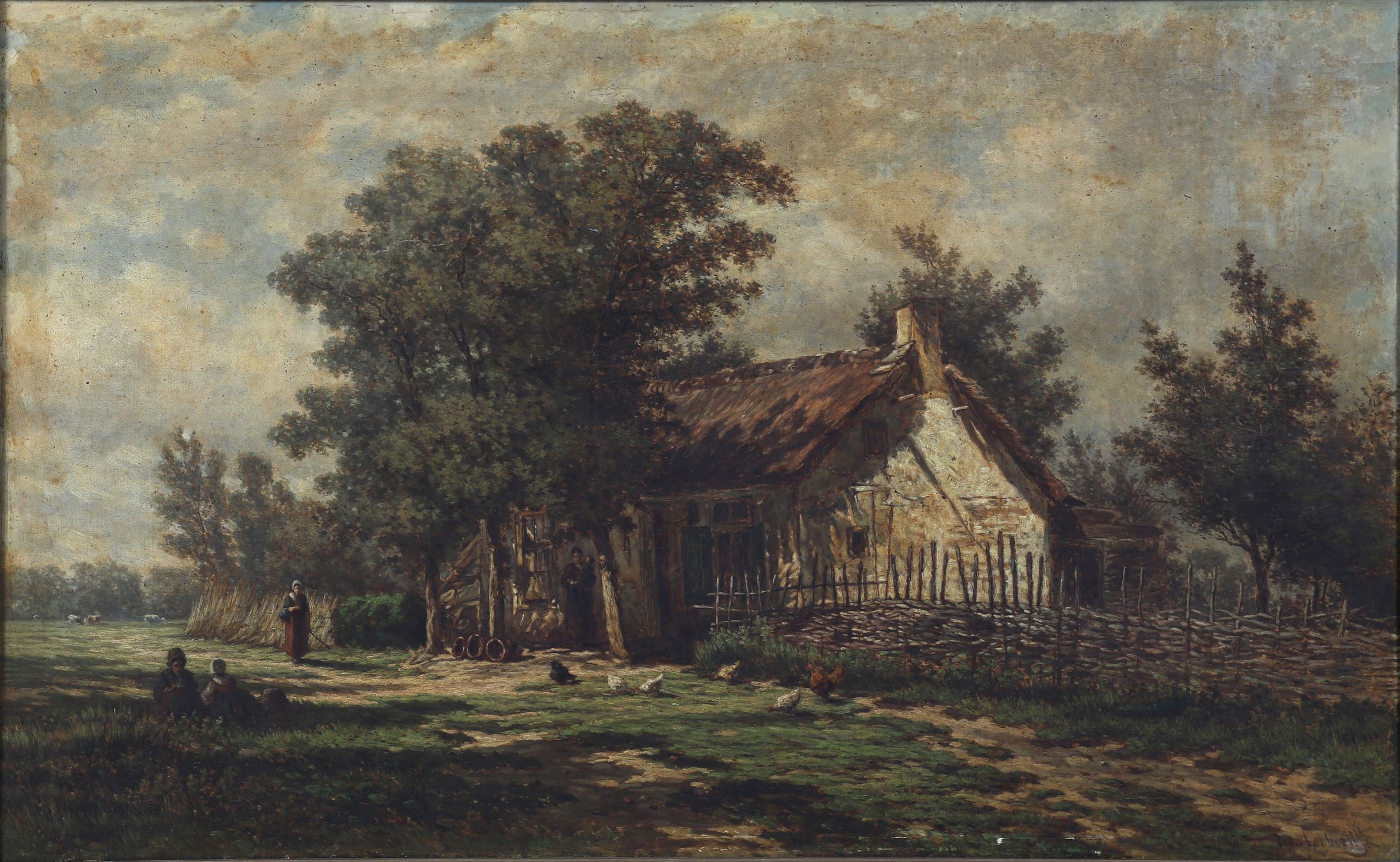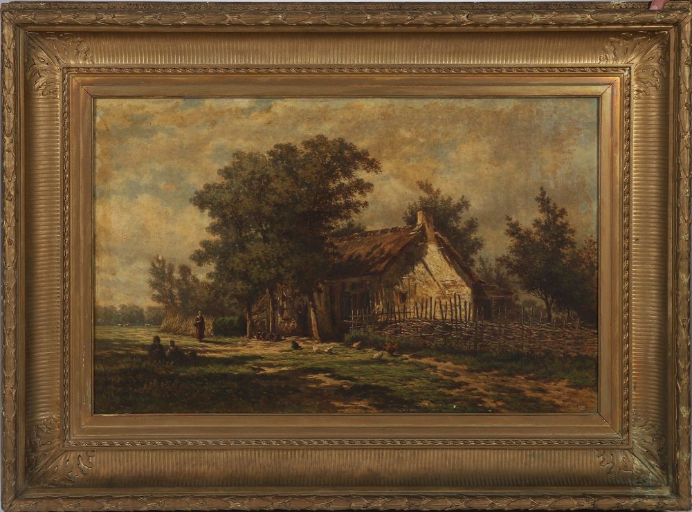 Farmyard scene. Oil on canvas. Enclosed in a gilt frame.