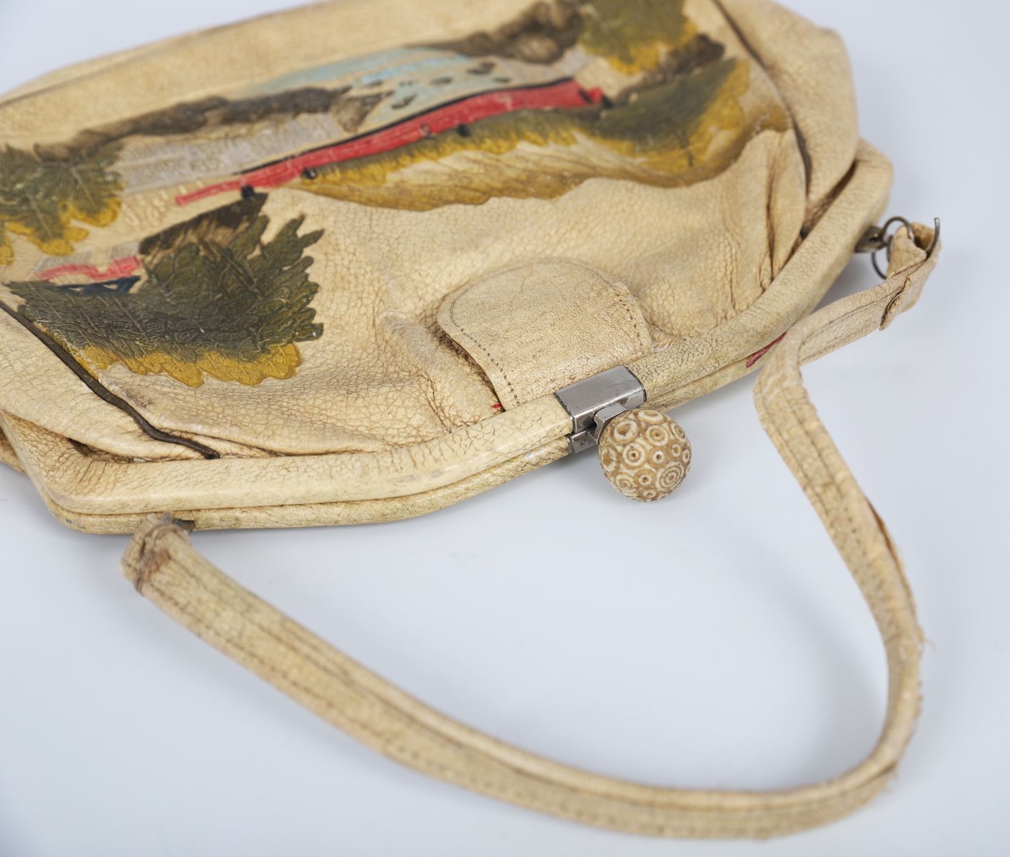 Lot 143 JAPANESE HAND-PAINTED LEATHER HANDBAG