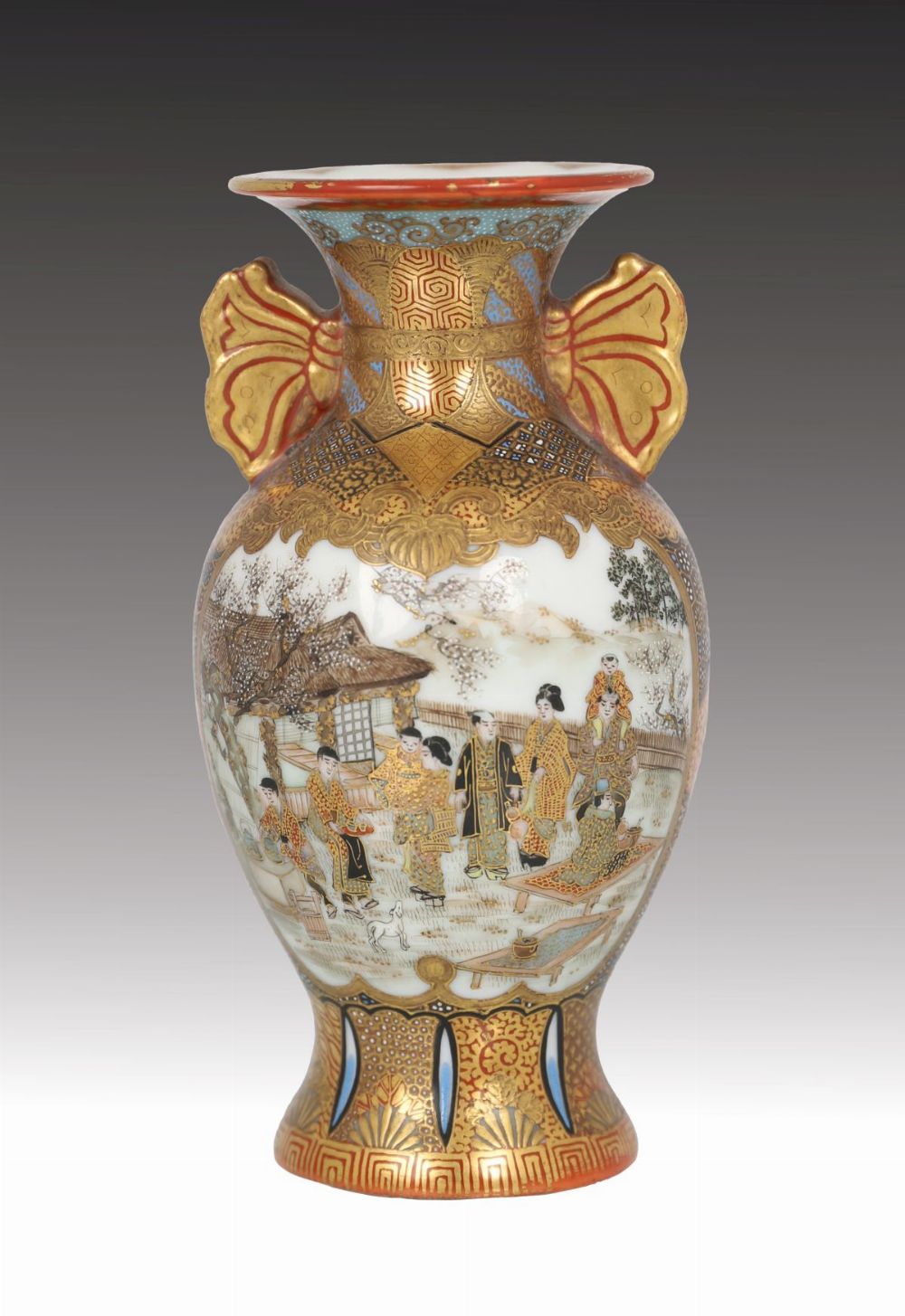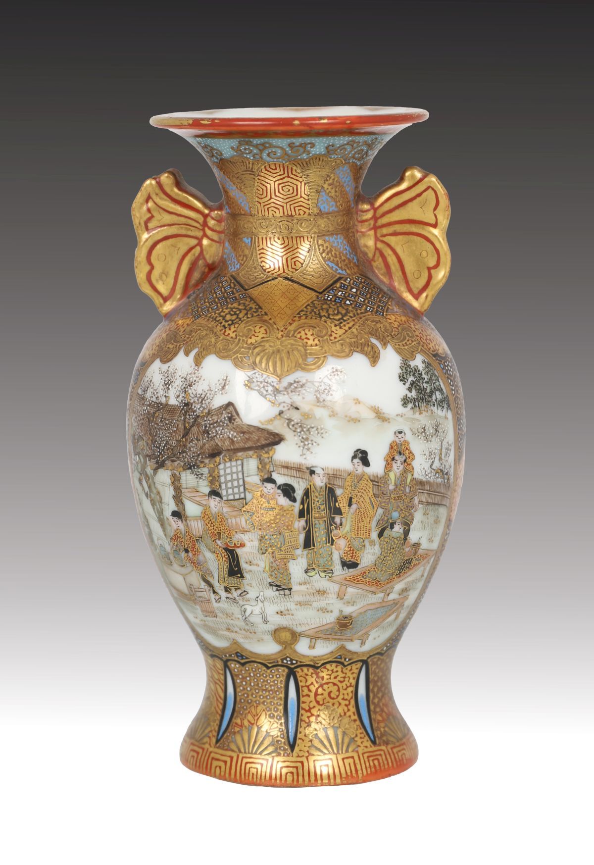 decorated with ornithological and figural reserves on a gilded ground. Seal mark to base