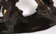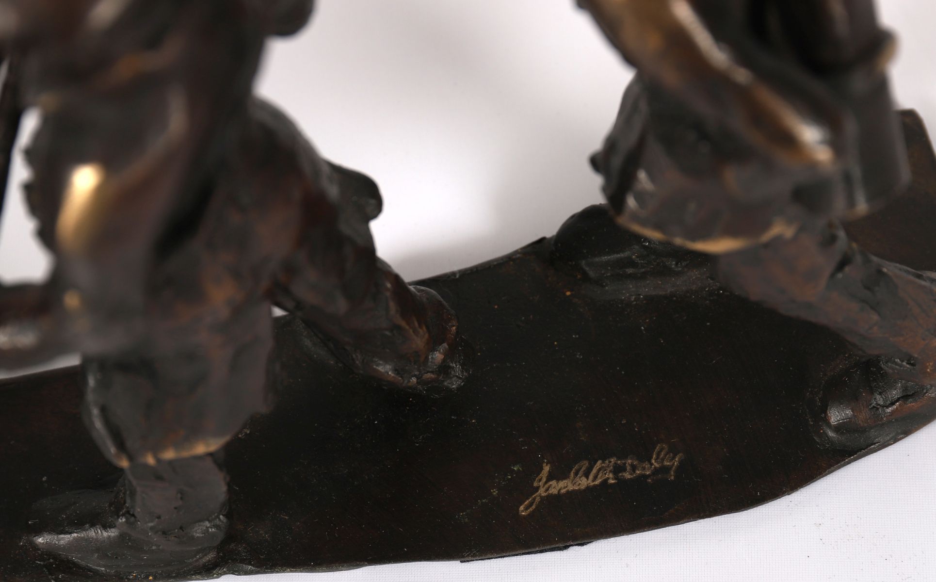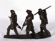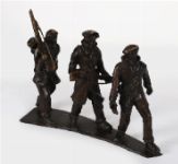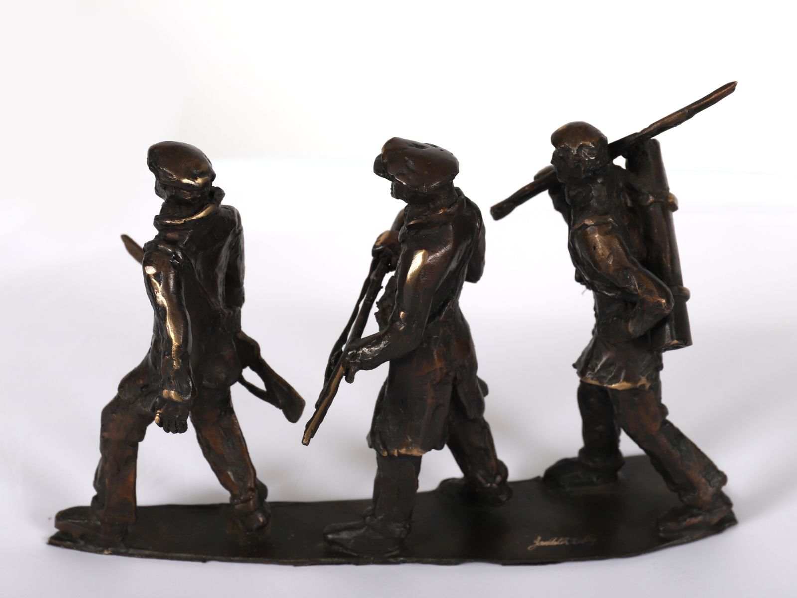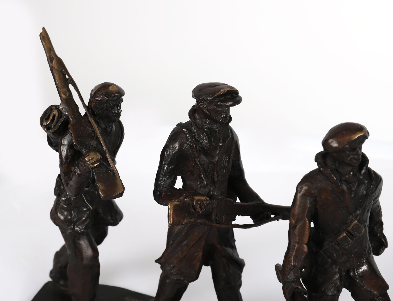 A bronze group sculpture by Jarlath Daly titled The Flying Column, depicting four armed Irish Republican fighters advancing in formation. Richly detailed and dynamically modelled. Signed by the artist.