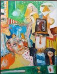 It was a remarkable rebirth, physically and creatively, releasing him into a brilliant flowering of talent and dispelling the gloom of much of his earlier, moodier work. 'Colour is the most important thing', he wrote to a friend at the time, and he embraced colour with a new zeal. Max Beckmann and Oskar Kokoschka are often and rightly cited as important influences, though Bellany's voice is distinctively his own. What they all have in common, perhaps, is an autobiographical intensity of approach and a liking for personal symbolism (with the sea and its lore usually apparent). Bellany himself and Helen, his perpetual muse, feature in myriad guises Here he's a Captain Ahab-like magician with Helen as his straight-faced assistant in a dizzying composition with allusions to time, chance and the limitless possibilities of life. Throughout and following his life, John Bellany was the subject of numerous retrospective and survey exhibitions, and his work is included in many major collections throughout the UK, in Ireland and abroad.