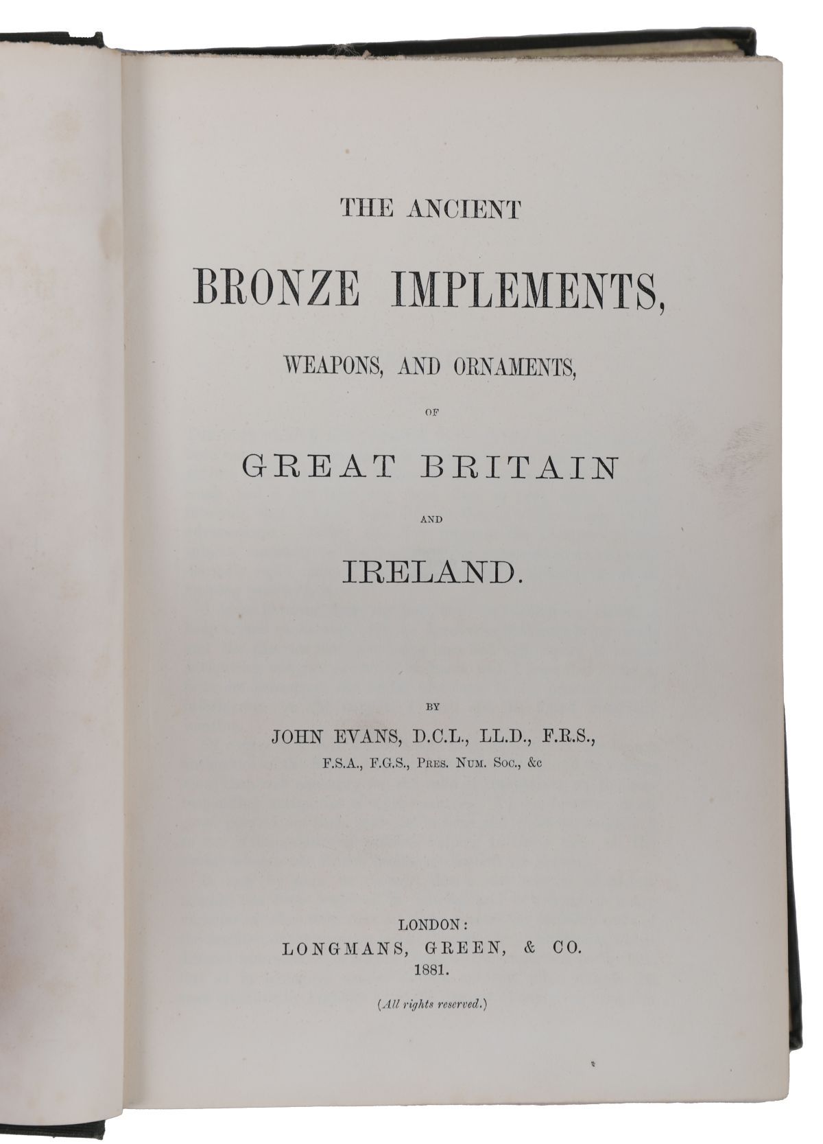 Lot 1020 JOHN EVANS — THE ANCIENT BRONZE IMPLEMENTS, WEAPONS AND ORNAMENTS OF GREAT BRITAIN AND IRELAND