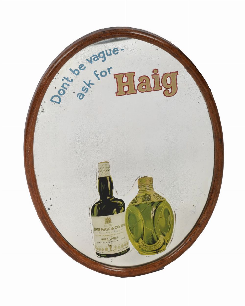 Lot 369 JOHN HAIG WHISKY ADVERTISING MIRROR, “DON’T BE VAGUE, ASK FOR HAIGâ€