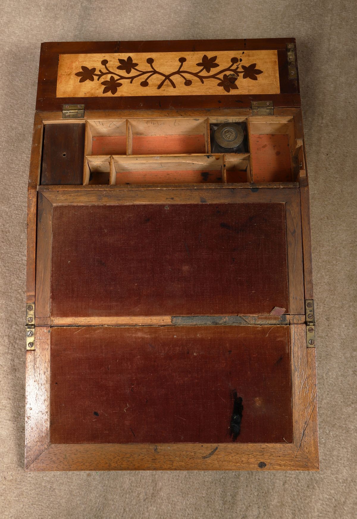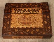 Lot 597 KILLARNEY YEW WOOD ARBUTUS AND MARQUETRY WRITING SLOPE (MUCKROSS ABBEY)