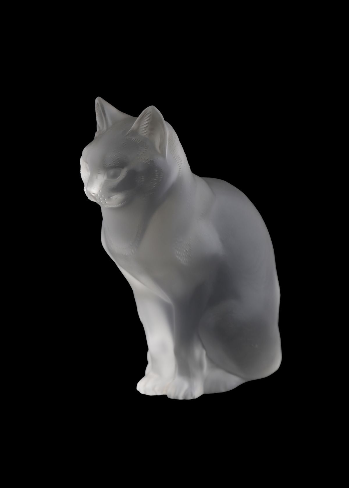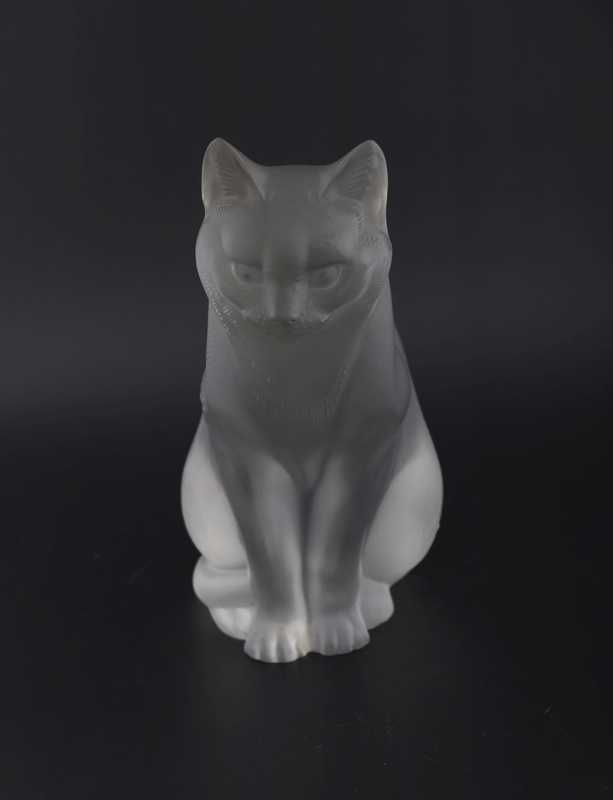 A small Lalique frosted glass figure of a seated cat, well modelled with smooth satin finish and stylised form. Signed on the base.