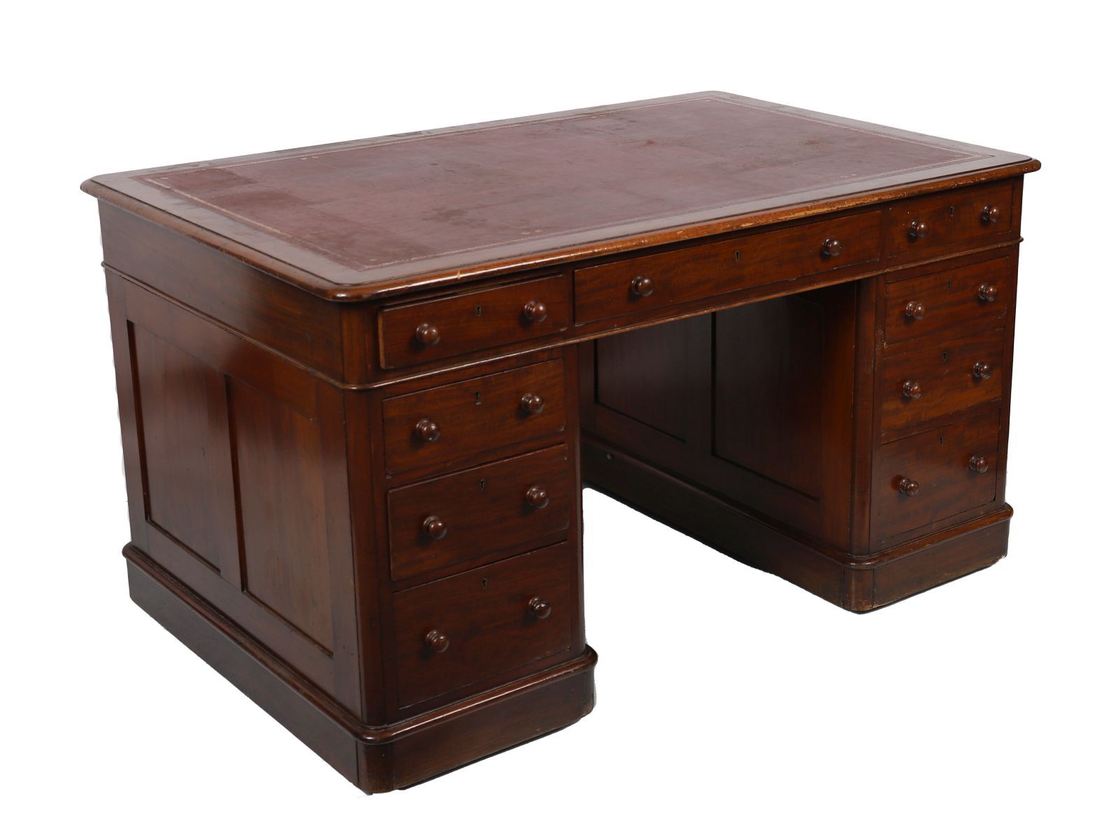 Lot 453 LARGE 19TH-CENTURY MAHOGANY PEDESTAL WRITING DESK