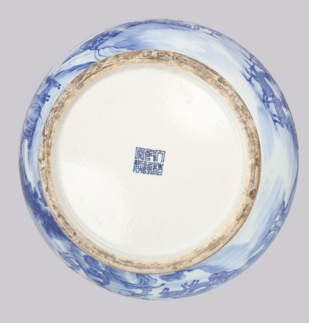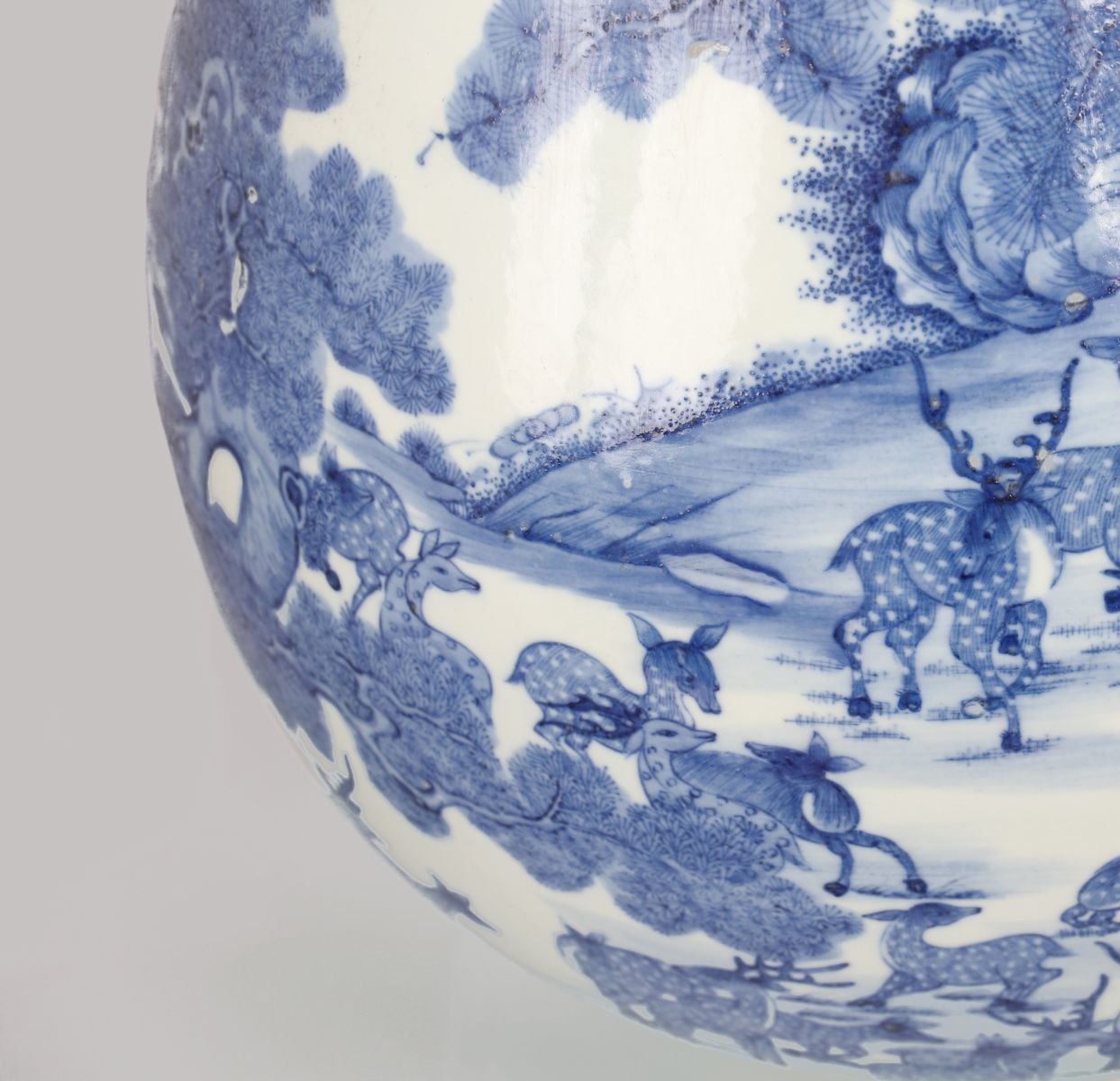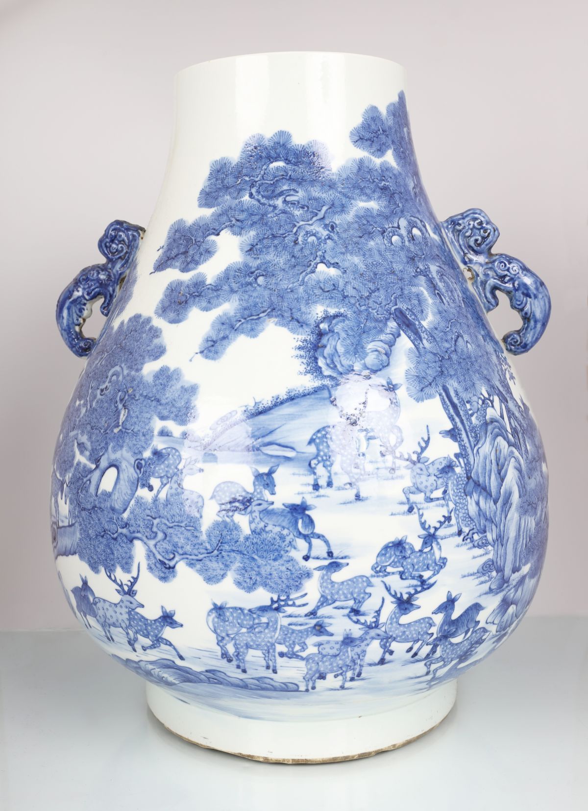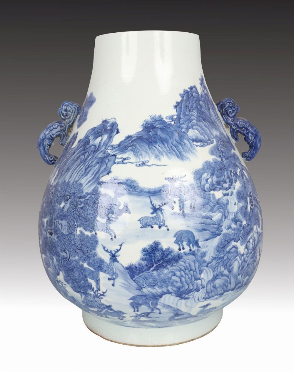 Lot 34 LARGE CHINESE BLUE AND WHITE VASE WITH DEER AND LANDSCAPE SCENE